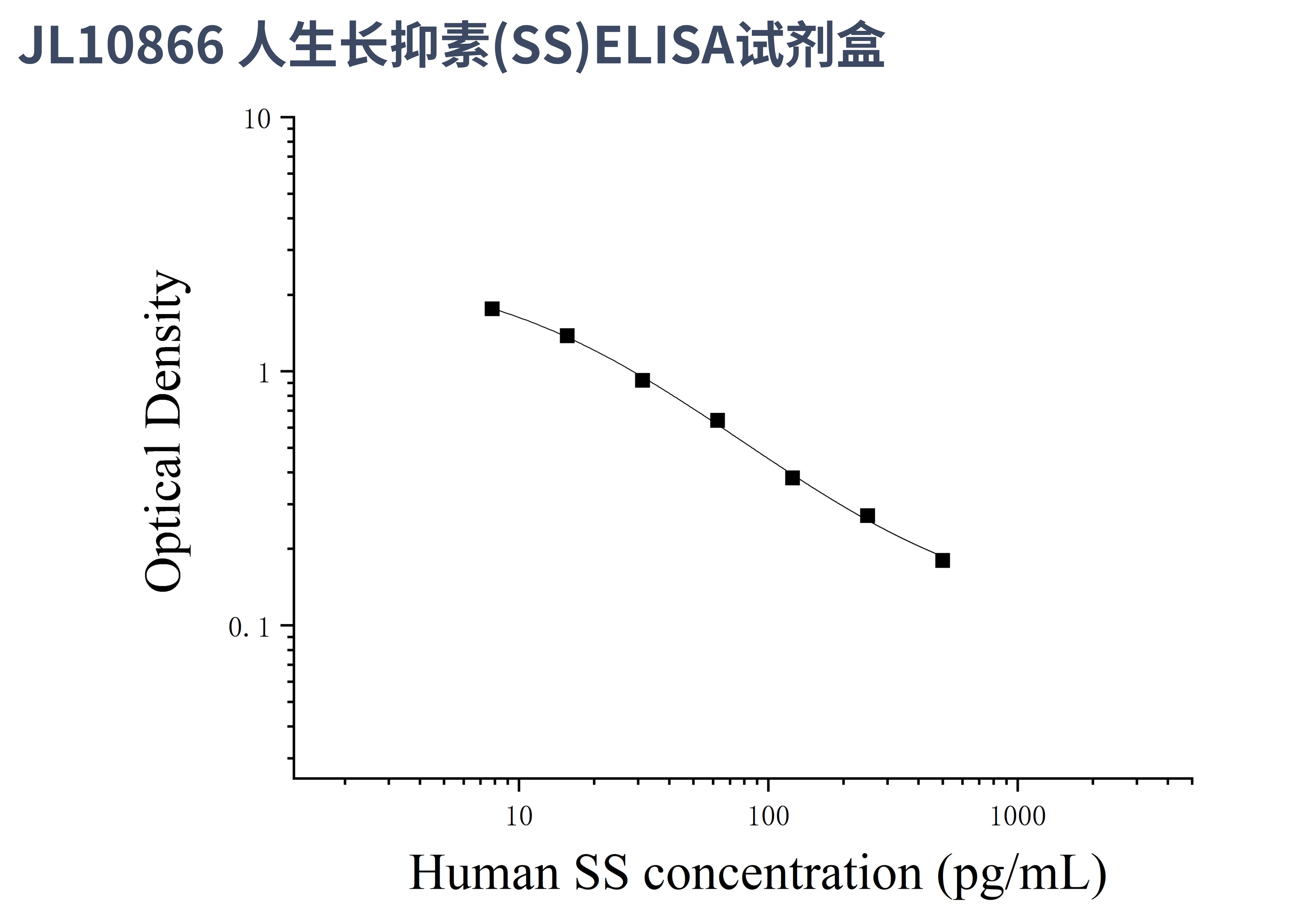 由于实验操作条件的不同( 如操作者、移液技术、洗板技术和稳定条件等),标准曲线的OD值会有所差异。以下数据和曲线仅供参考,实验者需根据自己的实验建立标准曲线。