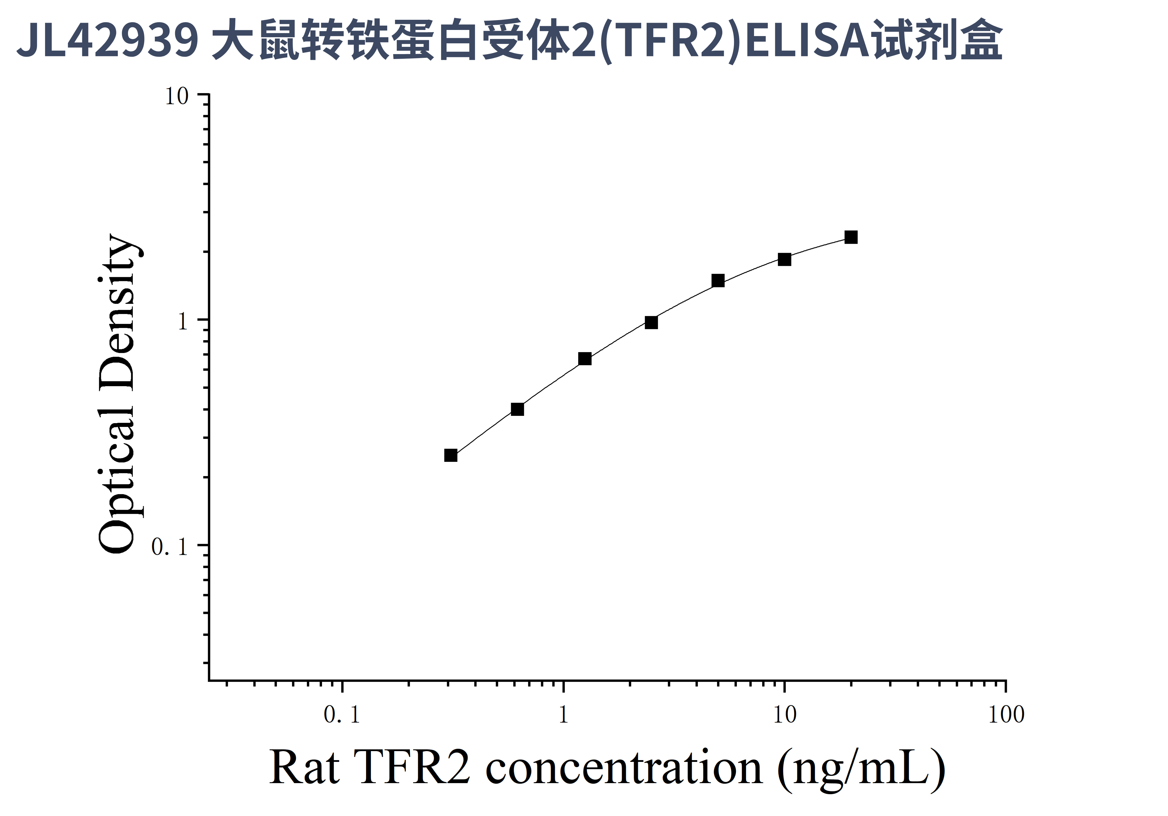 由于实验操作条件的不同( 如操作者、移液技术、洗板技术和稳定条件等),标准曲线的OD值会有所差异。以下数据和曲线仅供参考,实验者需根据自己的实验建立标准曲线。