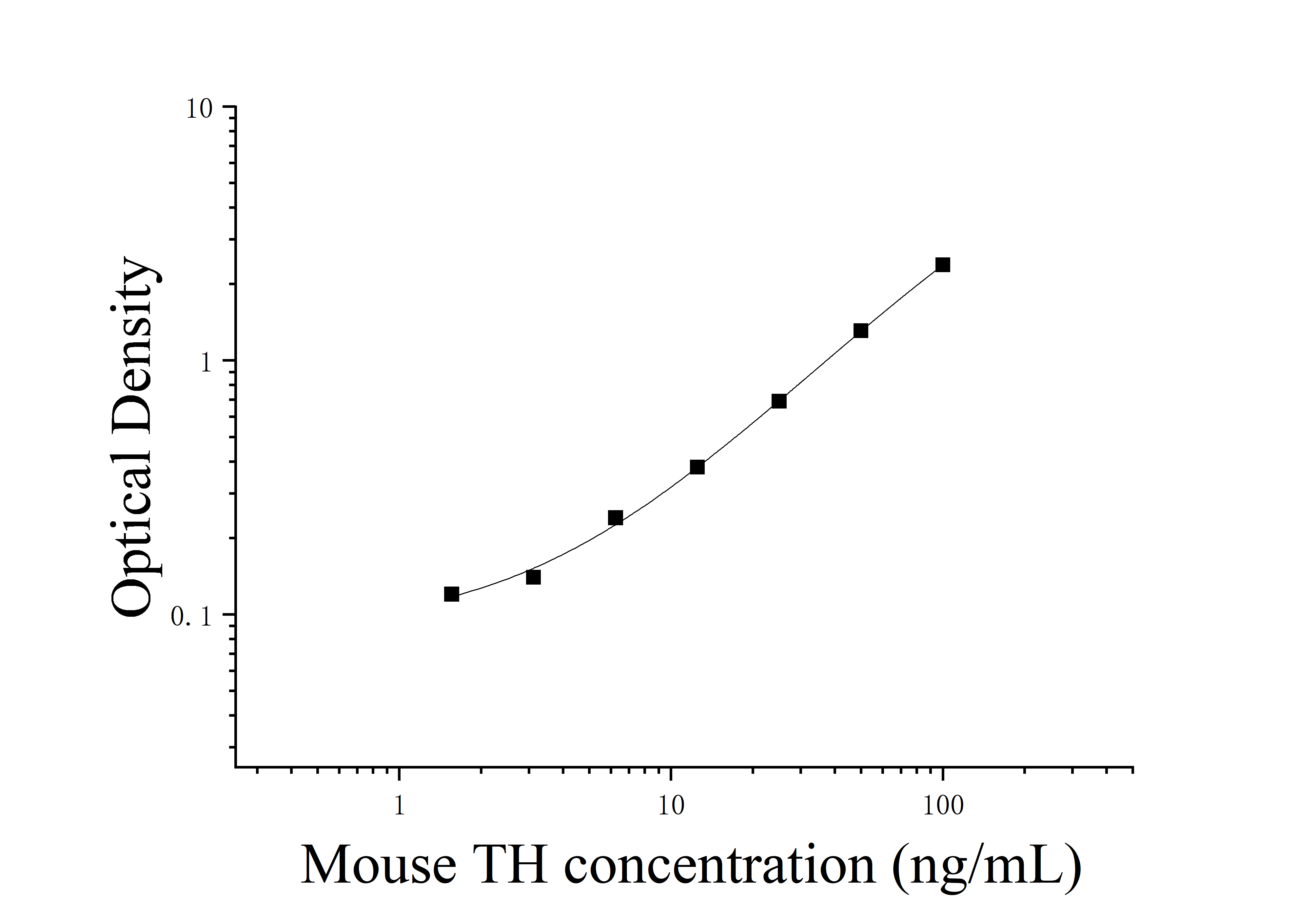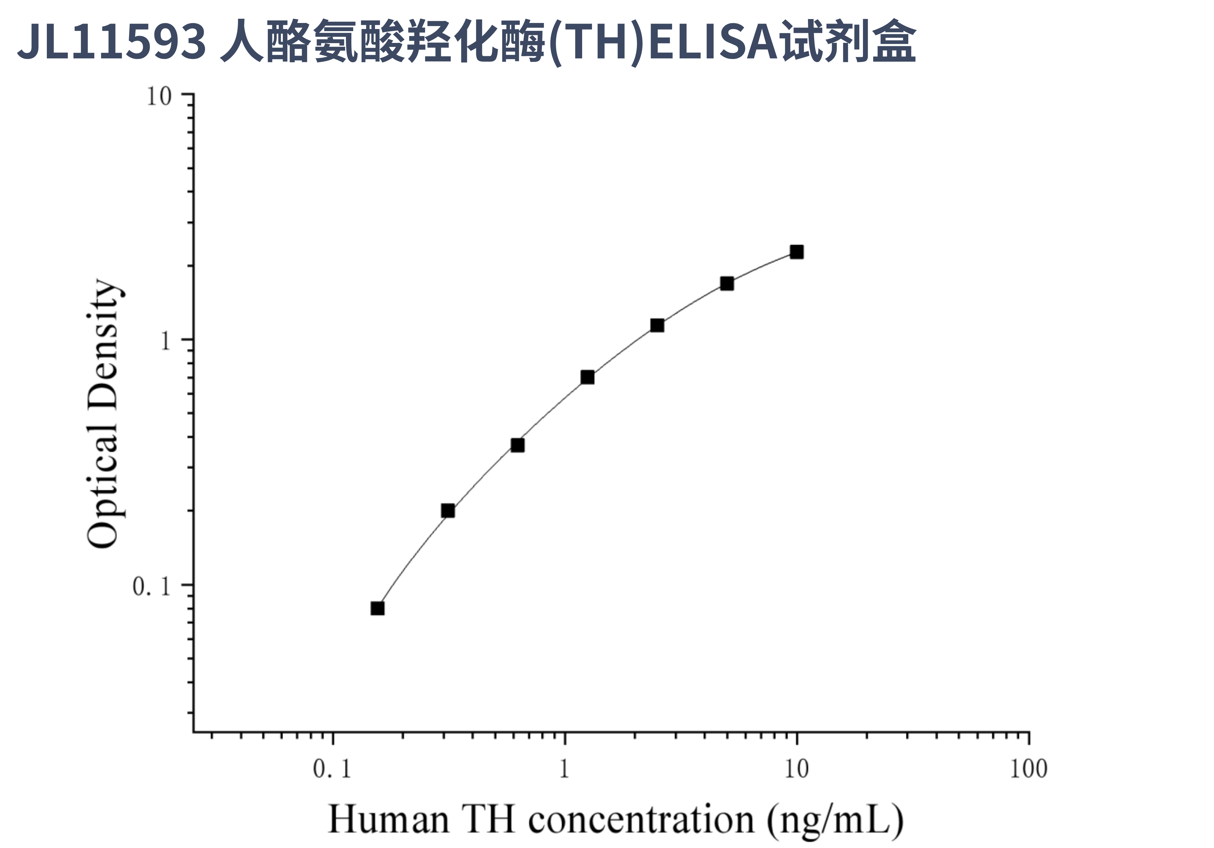 由于实验操作条件的不同( 如操作者、移液技术、洗板技术和稳定条件等),标准曲线的OD值会有所差异。以下数据和曲线仅供参考,实验者需根据自己的实验建立标准曲线。