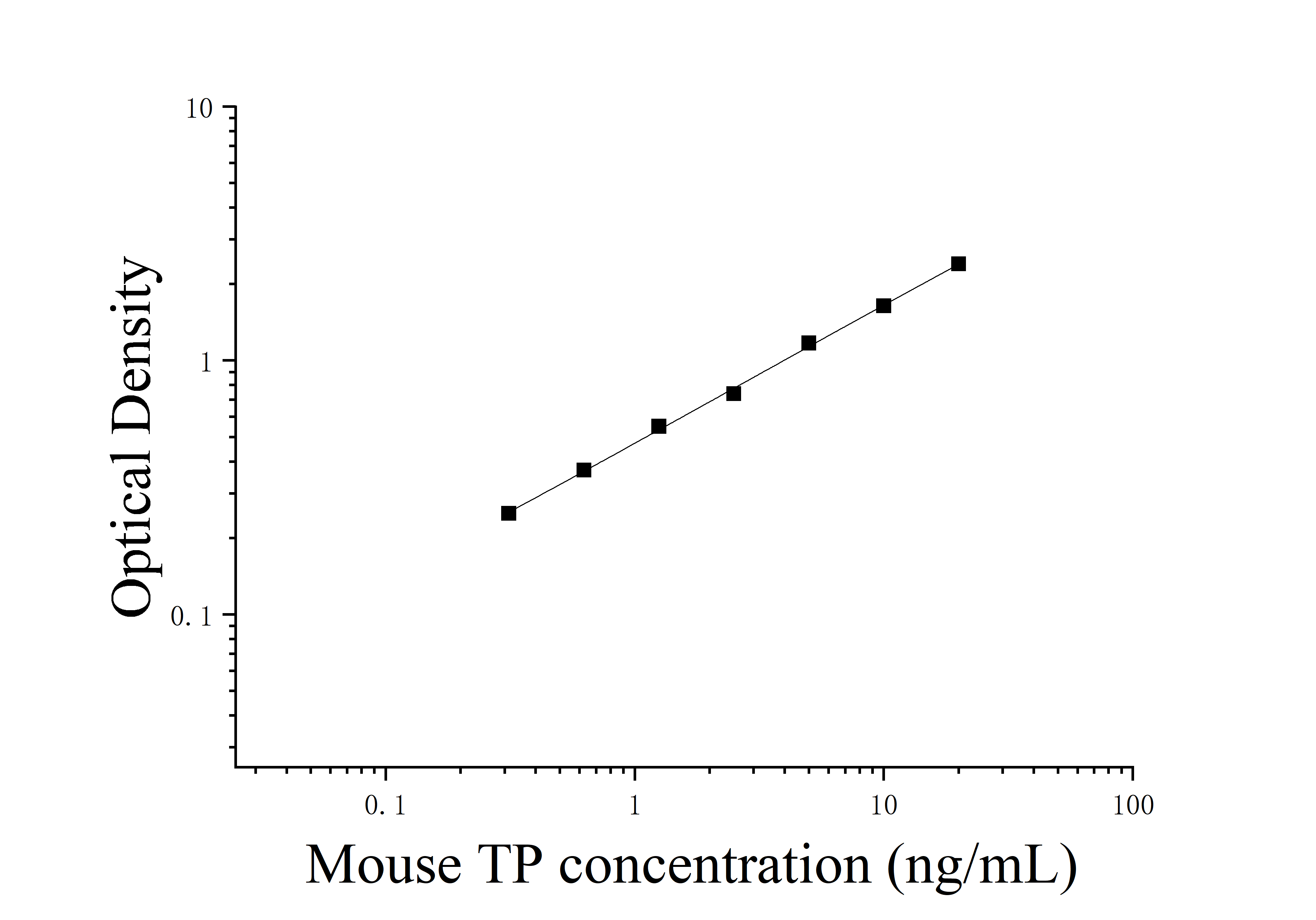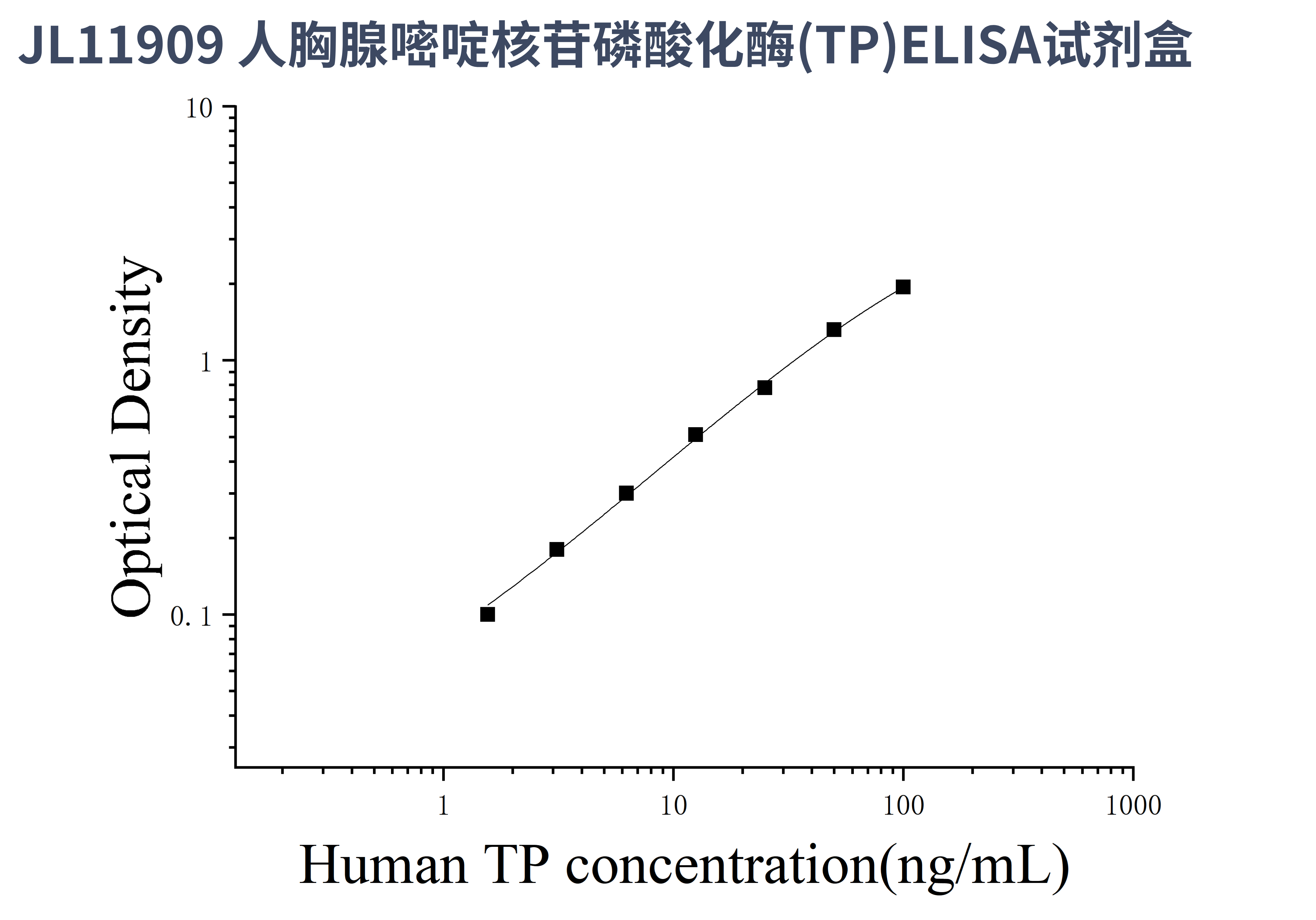 由于实验操作条件的不同( 如操作者、移液技术、洗板技术和稳定条件等),标准曲线的OD值会有所差异。以下数据和曲线仅供参考,实验者需根据自己的实验建立标准曲线。