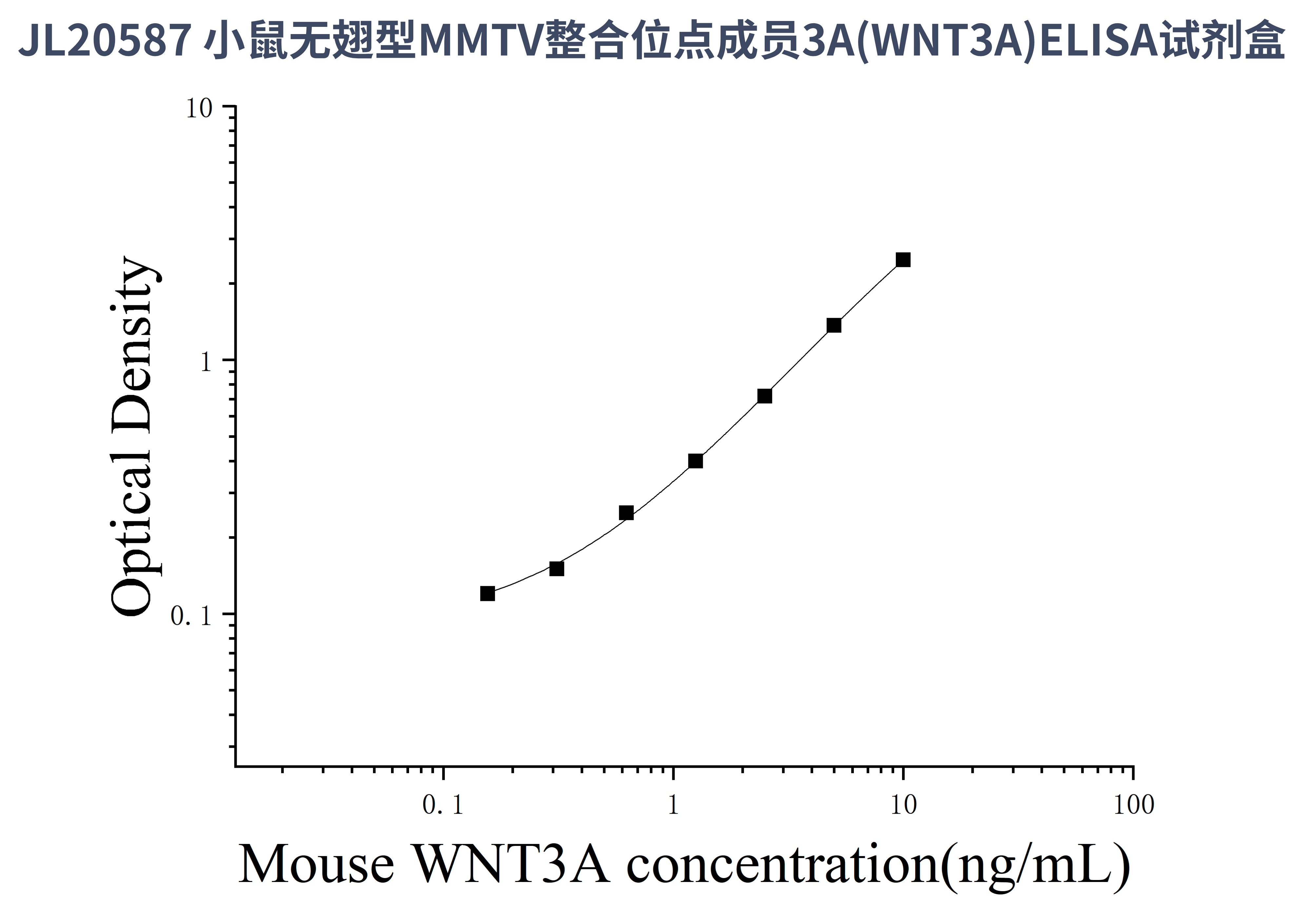 由于实验操作条件的不同( 如操作者、移液技术、洗板技术和稳定条件等),标准曲线的OD值会有所差异。以下数据和曲线仅供参考,实验者需根据自己的实验建立标准曲线。
