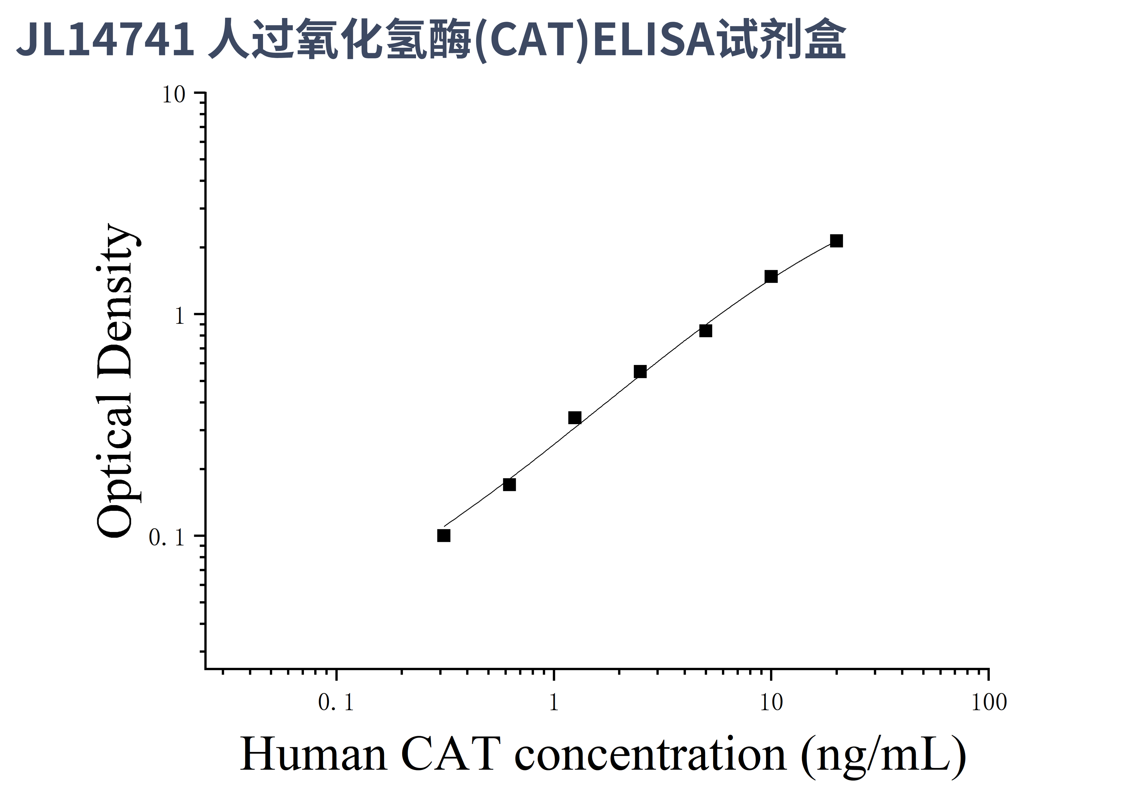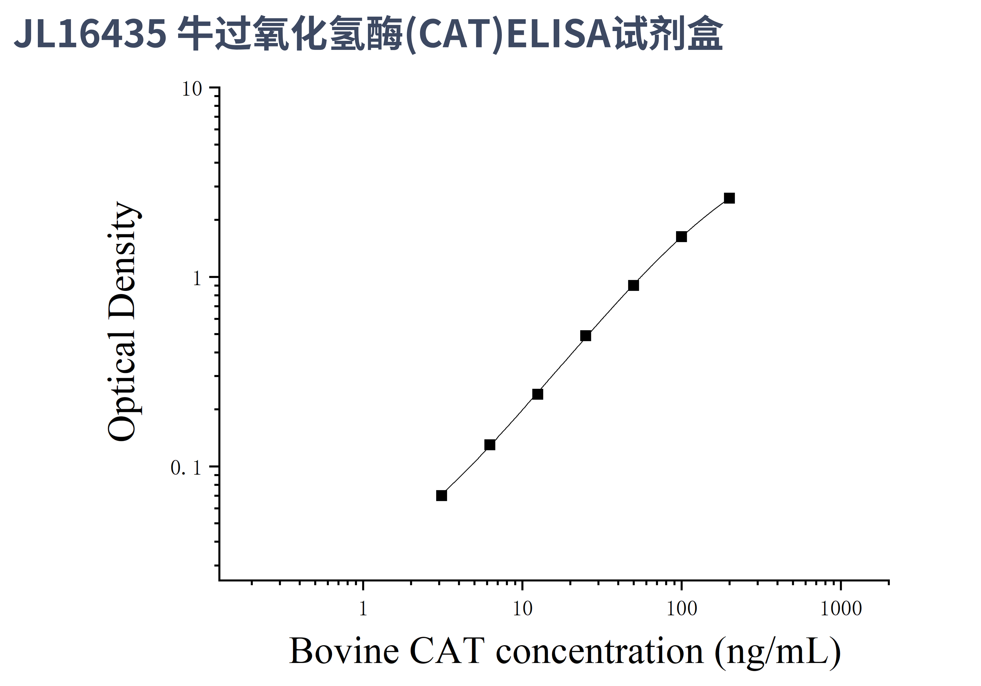 由于实验操作条件的不同( 如操作者、移液技术、洗板技术和稳定条件等),标准曲线的OD值会有所差异。以下数据和曲线仅供参考,实验者需根据自己的实验建立标准曲线。