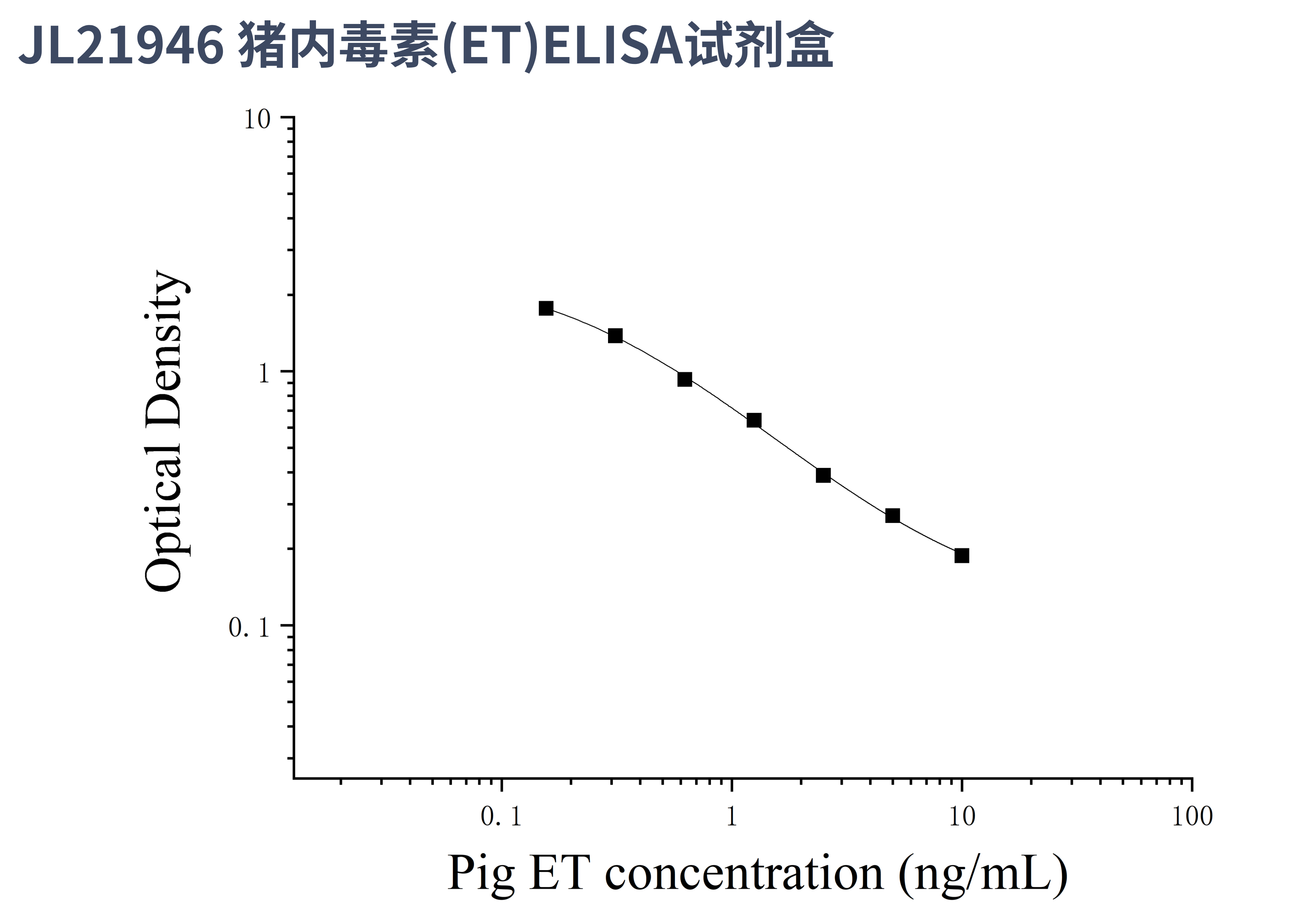 由于实验操作条件的不同( 如操作者、移液技术、洗板技术和稳定条件等),标准曲线的OD值会有所差异。以下数据和曲线仅供参考,实验者需根据自己的实验建立标准曲线。