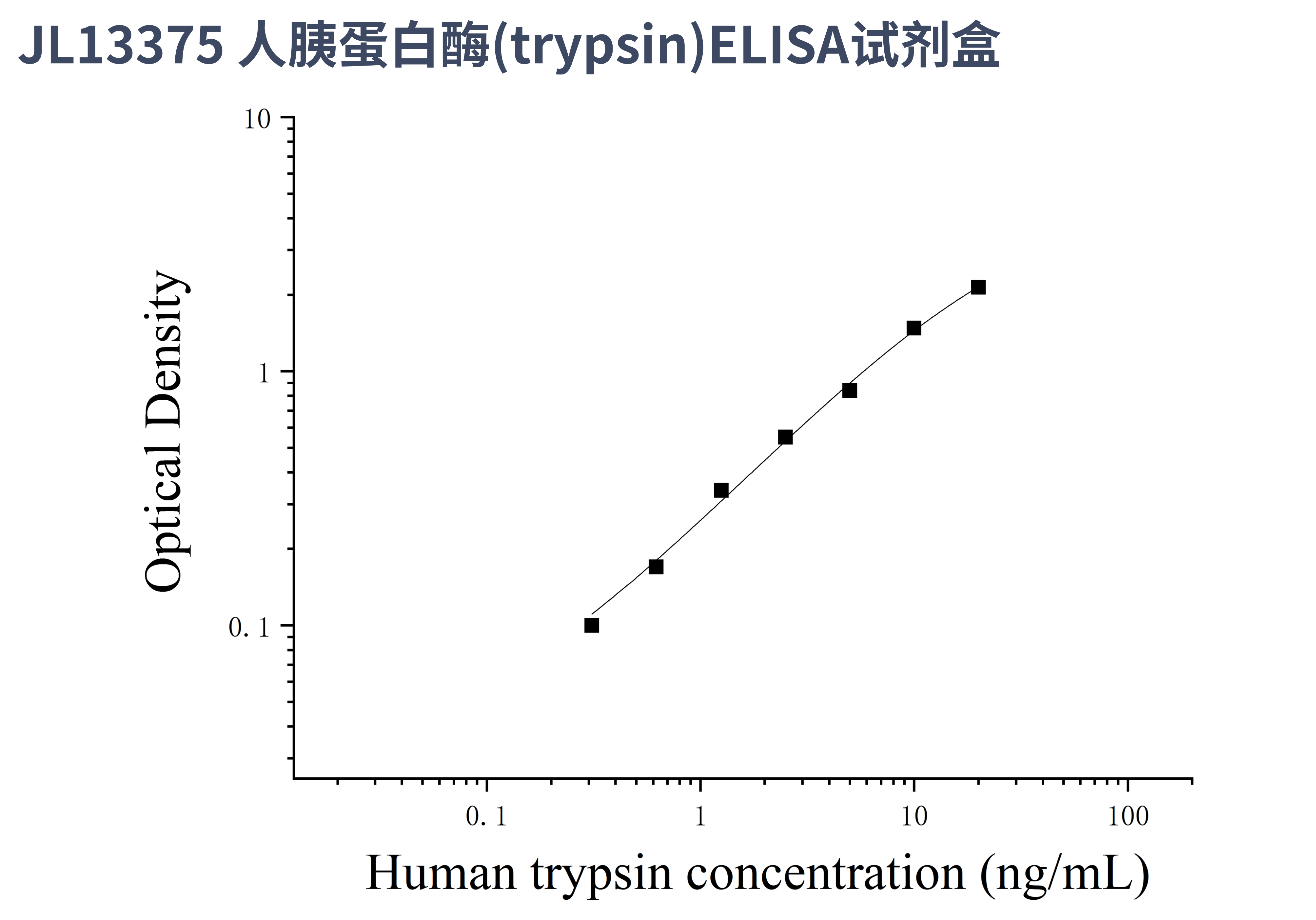 由于实验操作条件的不同( 如操作者、移液技术、洗板技术和稳定条件等),标准曲线的OD值会有所差异。以下数据和曲线仅供参考,实验者需根据自己的实验建立标准曲线。