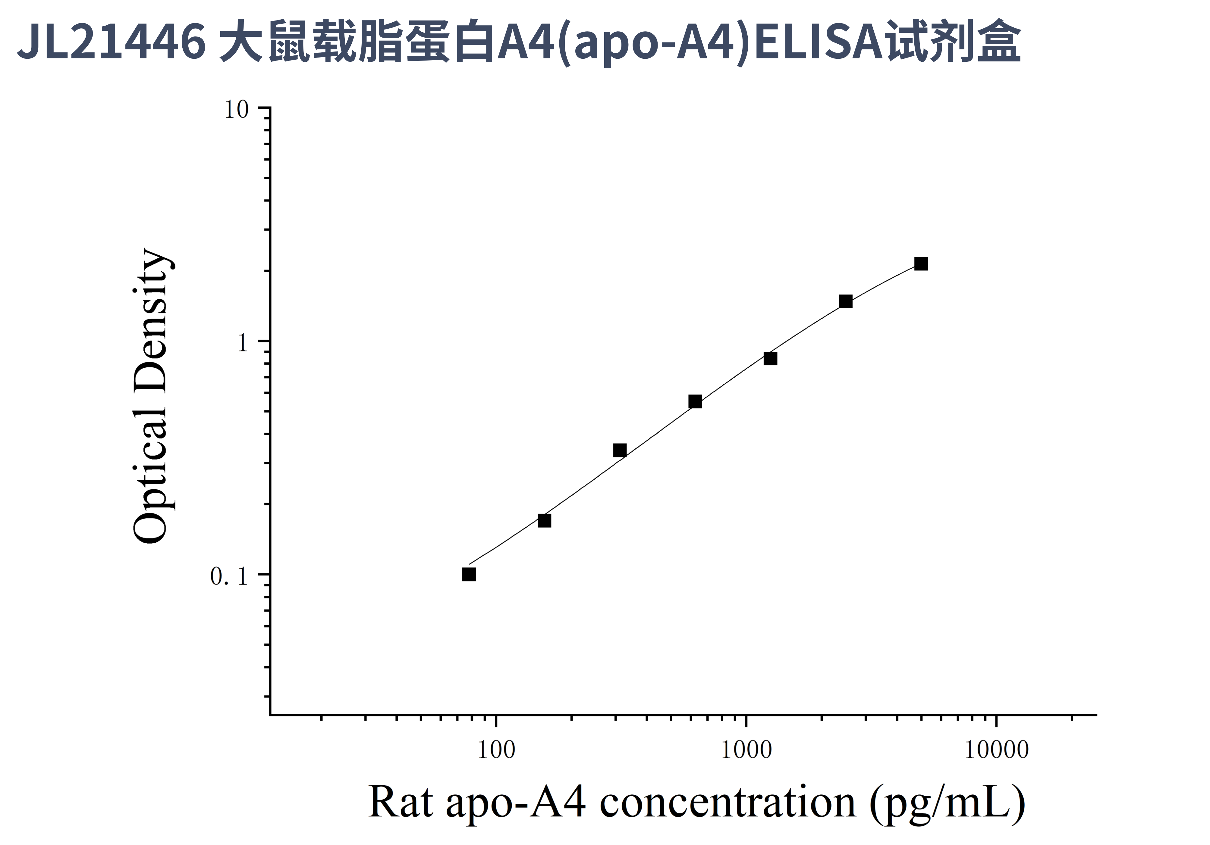 由于实验操作条件的不同( 如操作者、移液技术、洗板技术和稳定条件等),标准曲线的OD值会有所差异。以下数据和曲线仅供参考,实验者需根据自己的实验建立标准曲线。