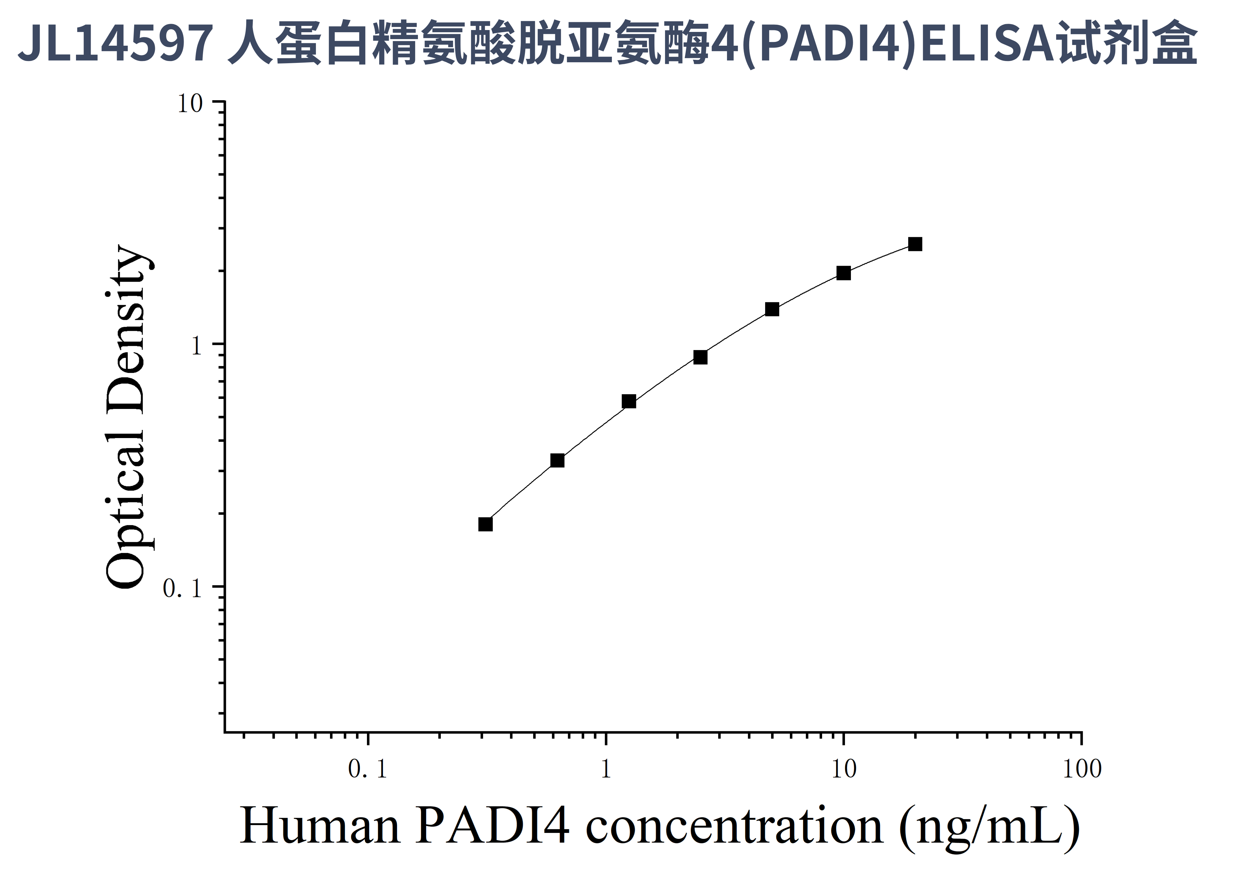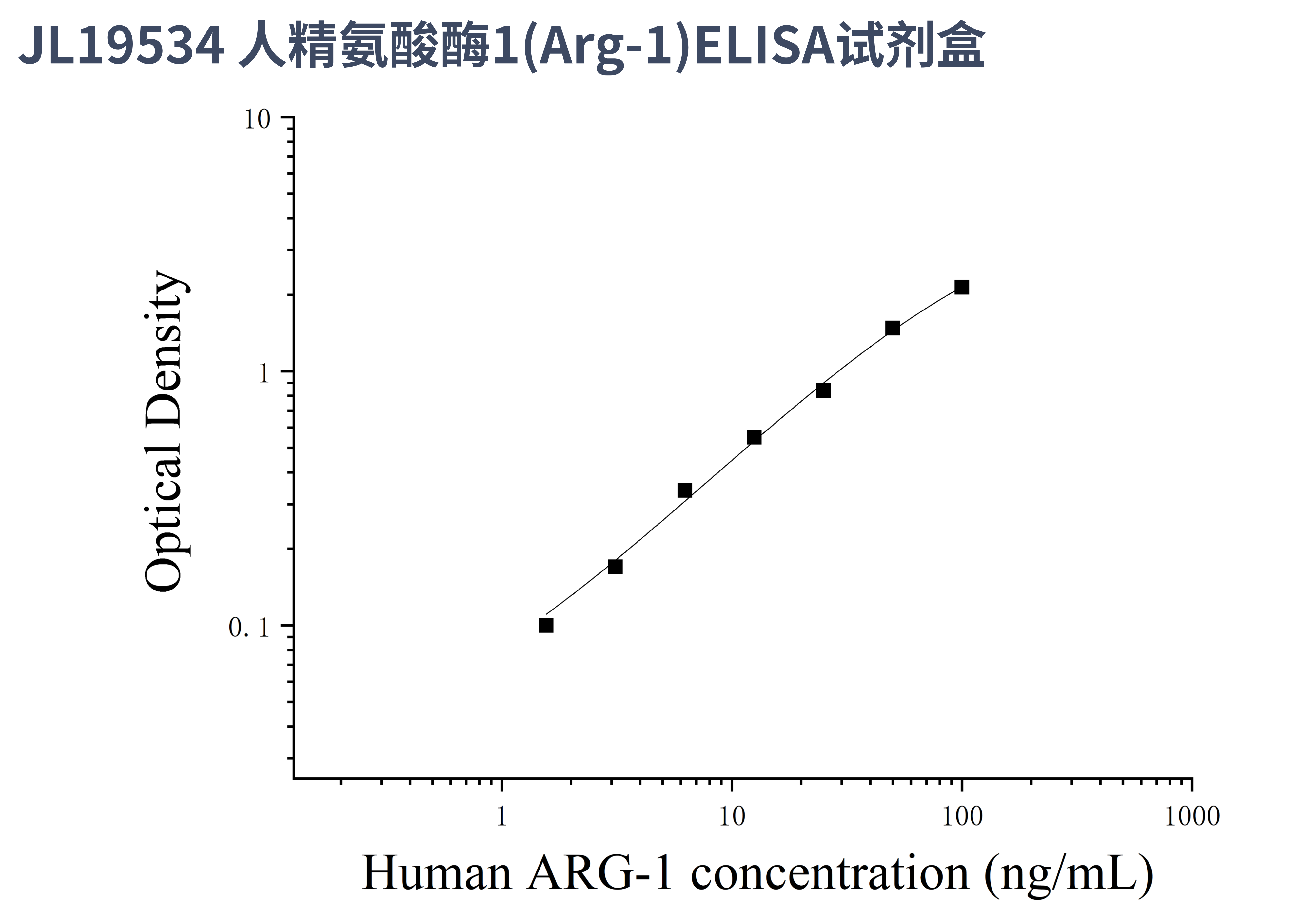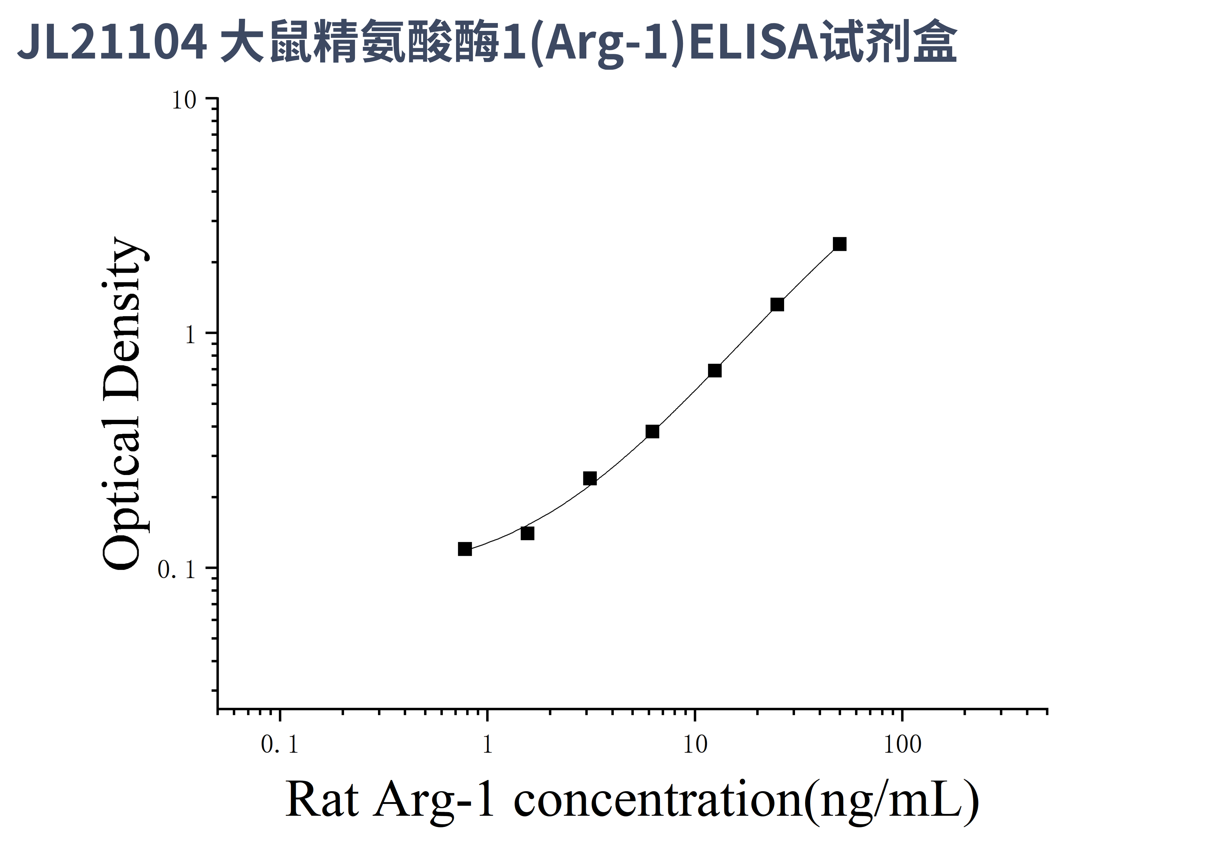 由于实验操作条件的不同( 如操作者、移液技术、洗板技术和稳定条件等),标准曲线的OD值会有所差异。以下数据和曲线仅供参考,实验者需根据自己的实验建立标准曲线。