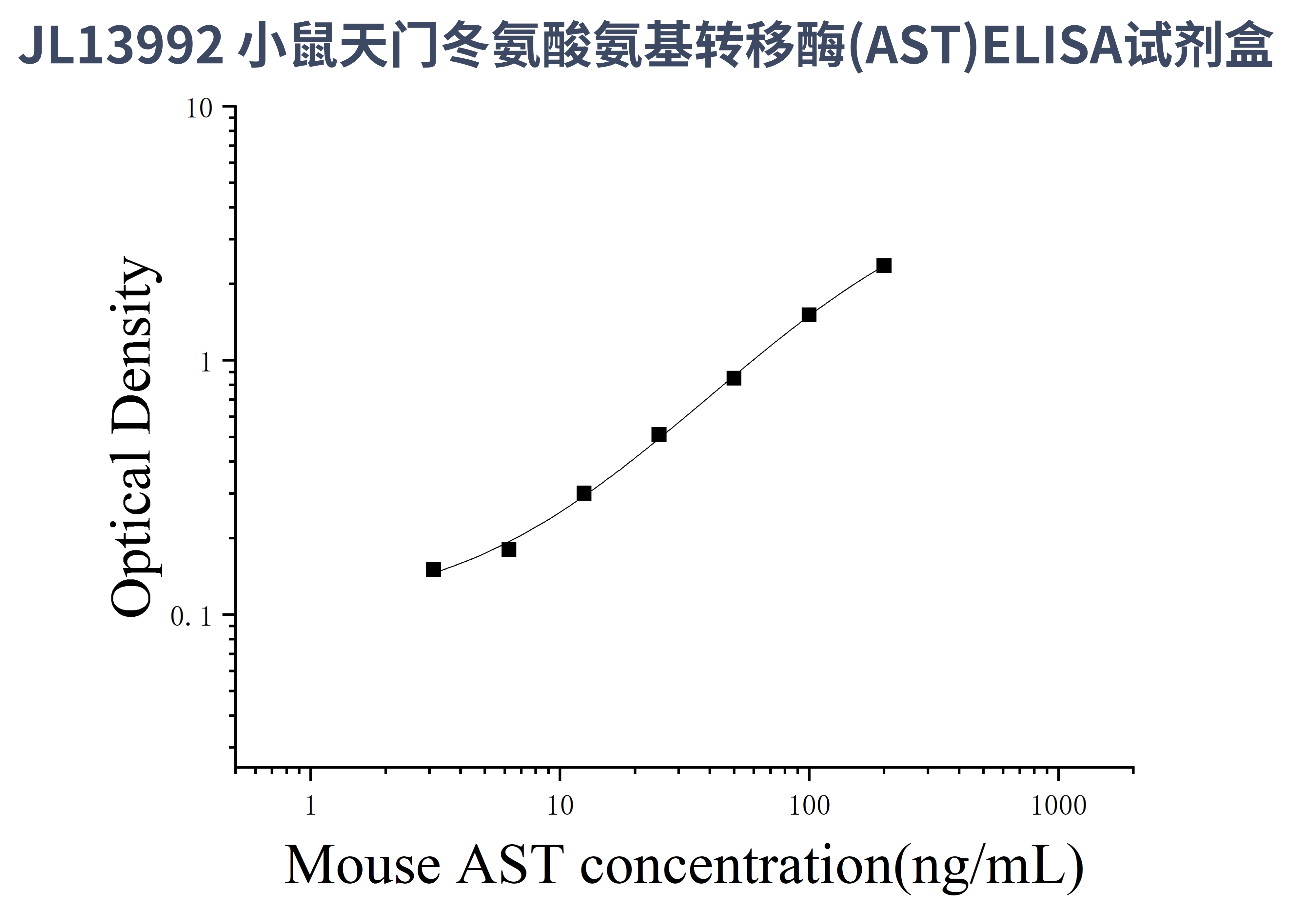 由于实验操作条件的不同( 如操作者、移液技术、洗板技术和稳定条件等),标准曲线的OD值会有所差异。以下数据和曲线仅供参考,实验者需根据自己的实验建立标准曲线。