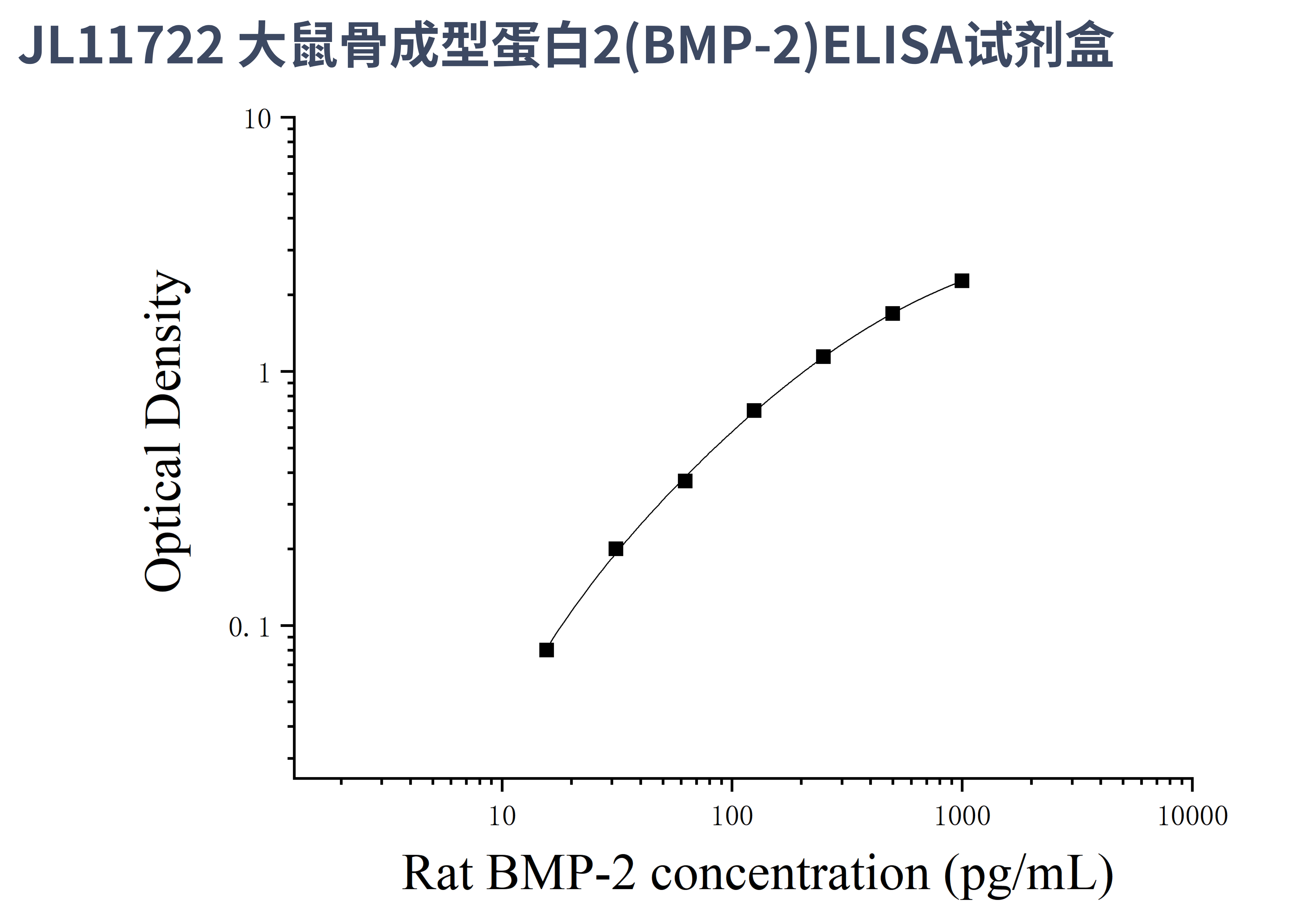 由于实验操作条件的不同( 如操作者、移液技术、洗板技术和稳定条件等),标准曲线的OD值会有所差异。以下数据和曲线仅供参考,实验者需根据自己的实验建立标准曲线。