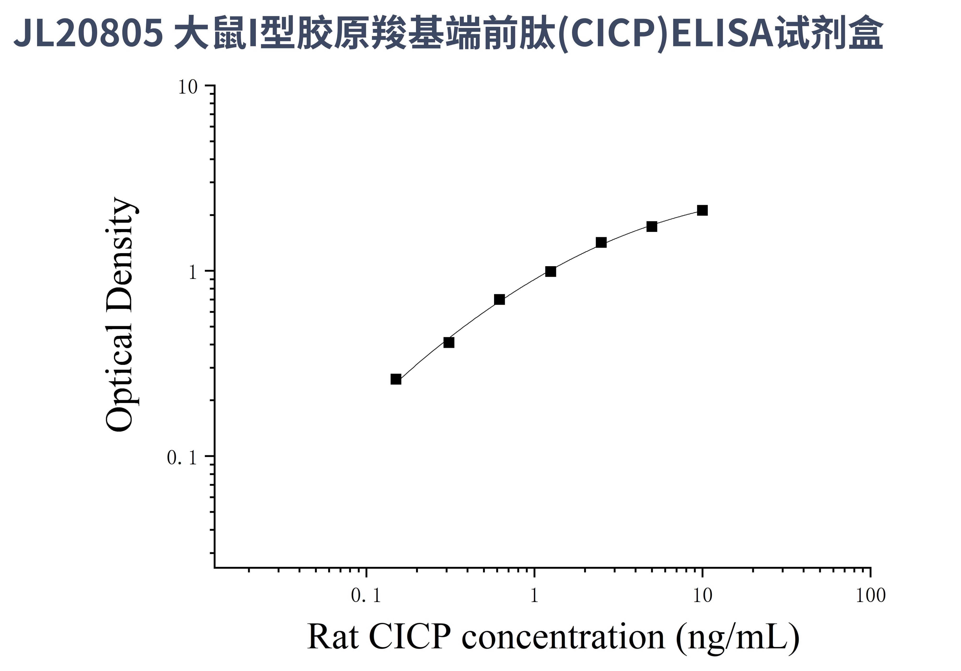 由于实验操作条件的不同( 如操作者、移液技术、洗板技术和稳定条件等),标准曲线的OD值会有所差异。以下数据和曲线仅供参考,实验者需根据自己的实验建立标准曲线。