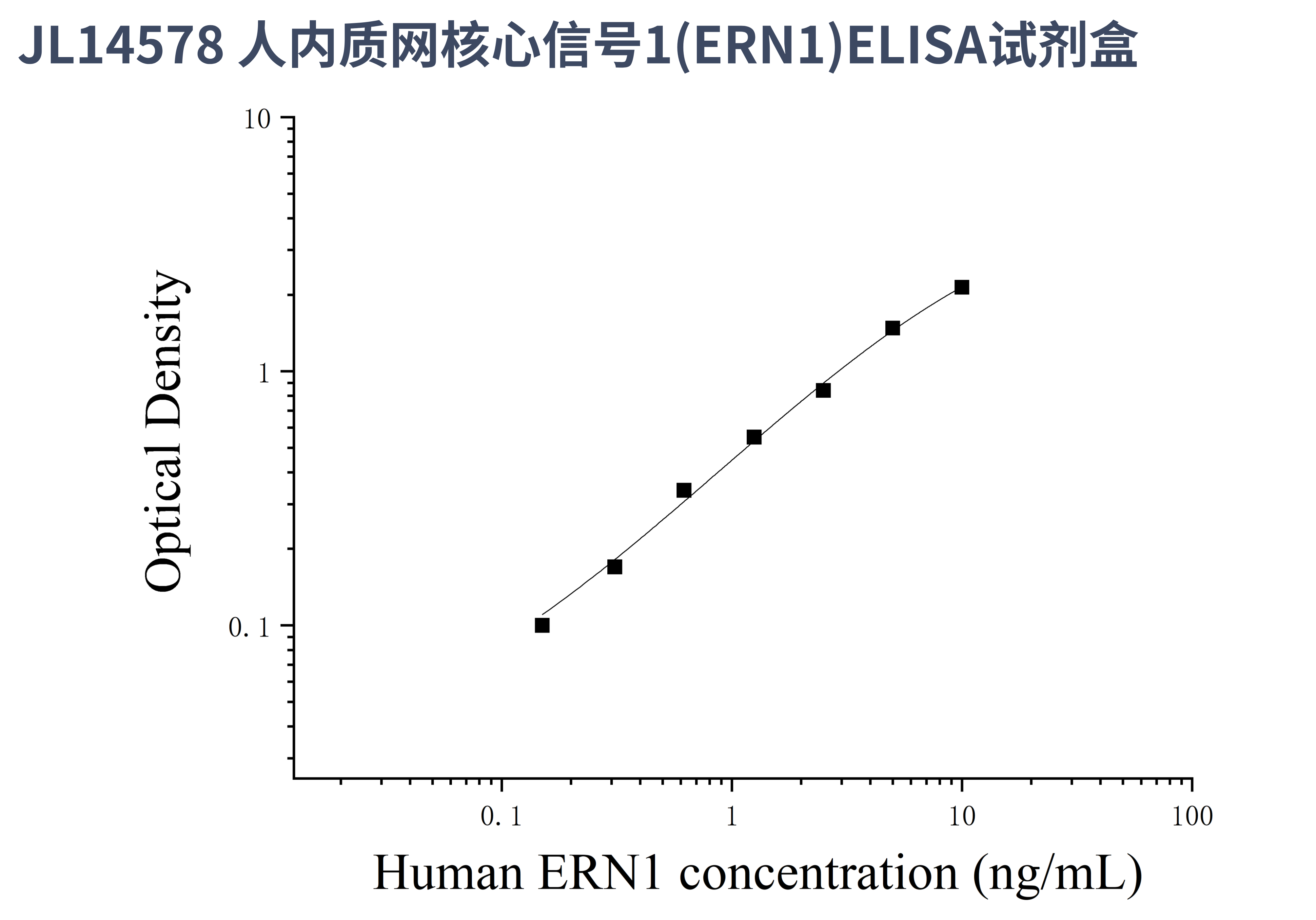 由于实验操作条件的不同( 如操作者、移液技术、洗板技术和稳定条件等),标准曲线的OD值会有所差异。以下数据和曲线仅供参考,实验者需根据自己的实验建立标准曲线。