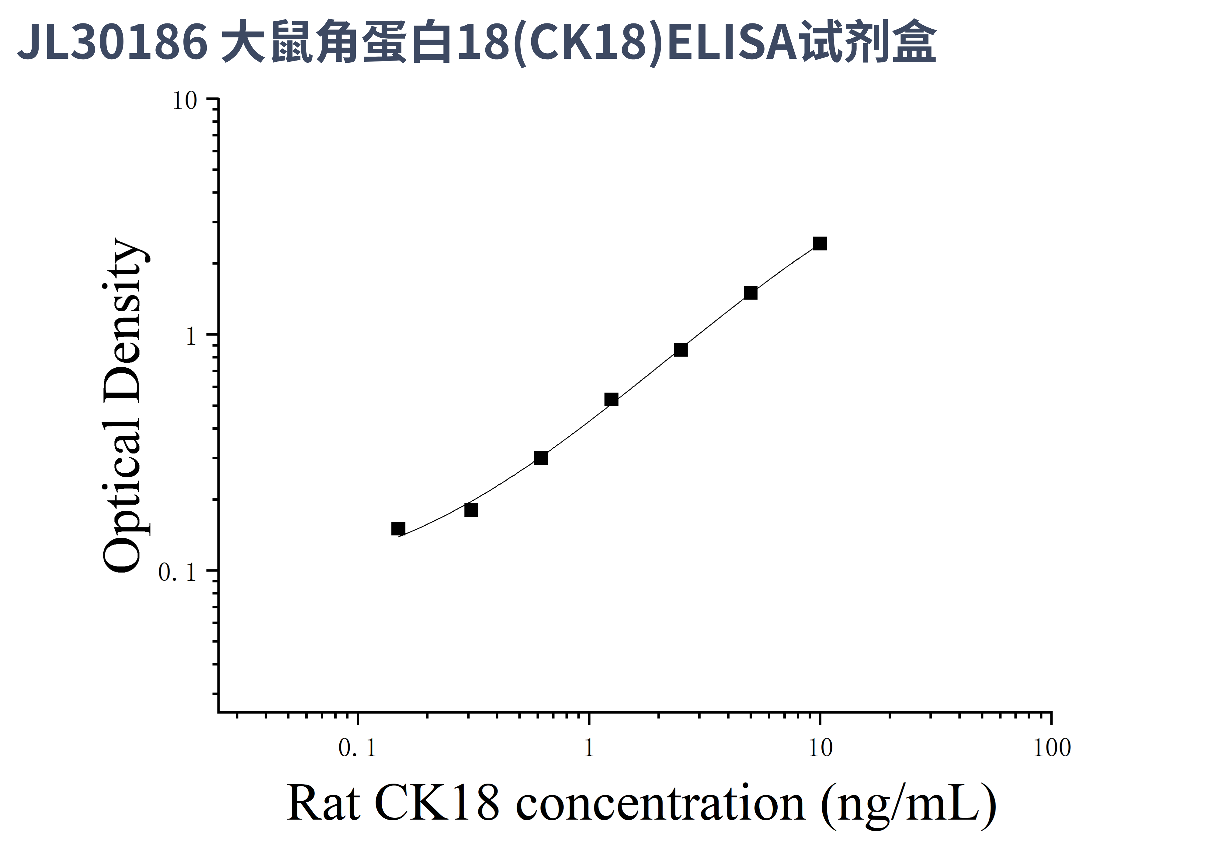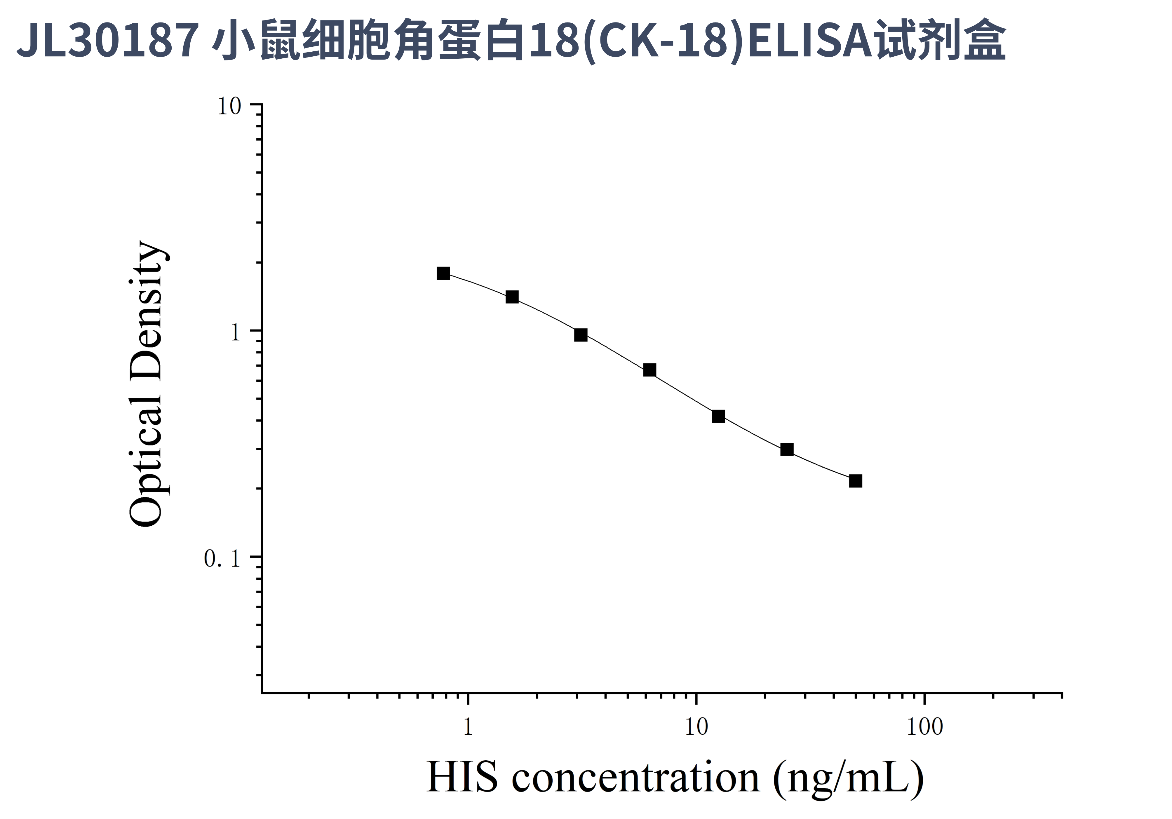 由于实验操作条件的不同( 如操作者、移液技术、洗板技术和稳定条件等),标准曲线的OD值会有所差异。以下数据和曲线仅供参考,实验者需根据自己的实验建立标准曲线。
