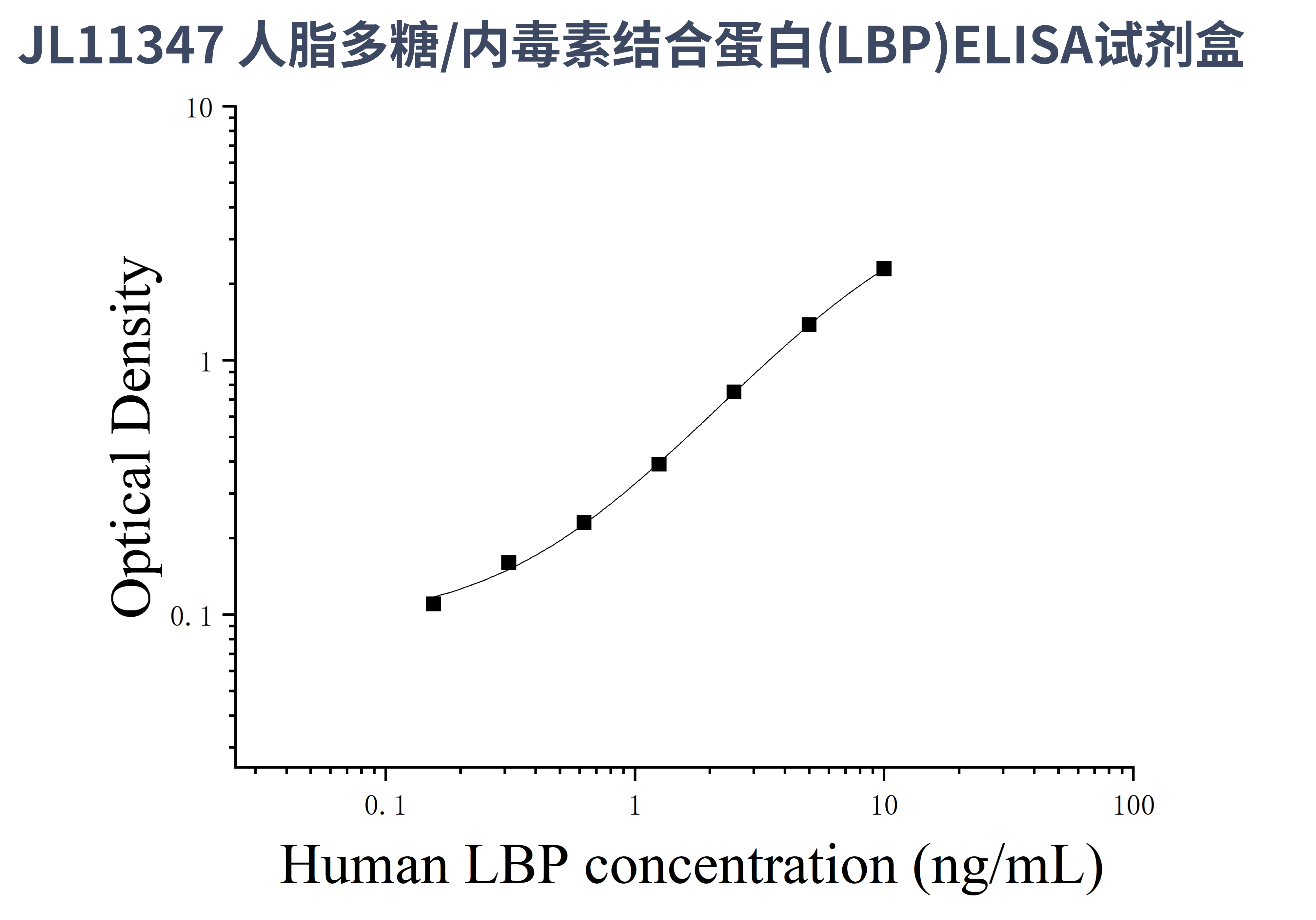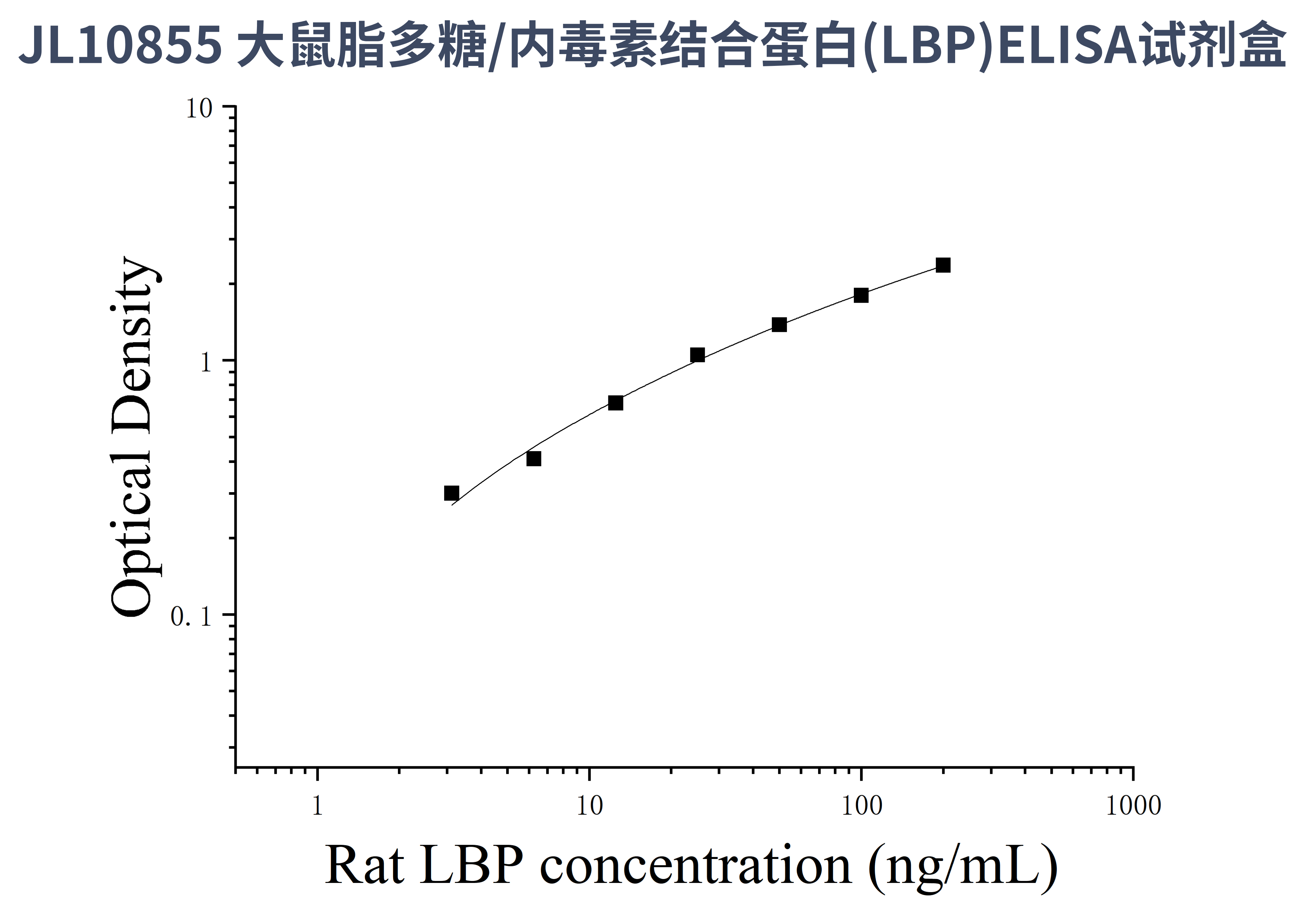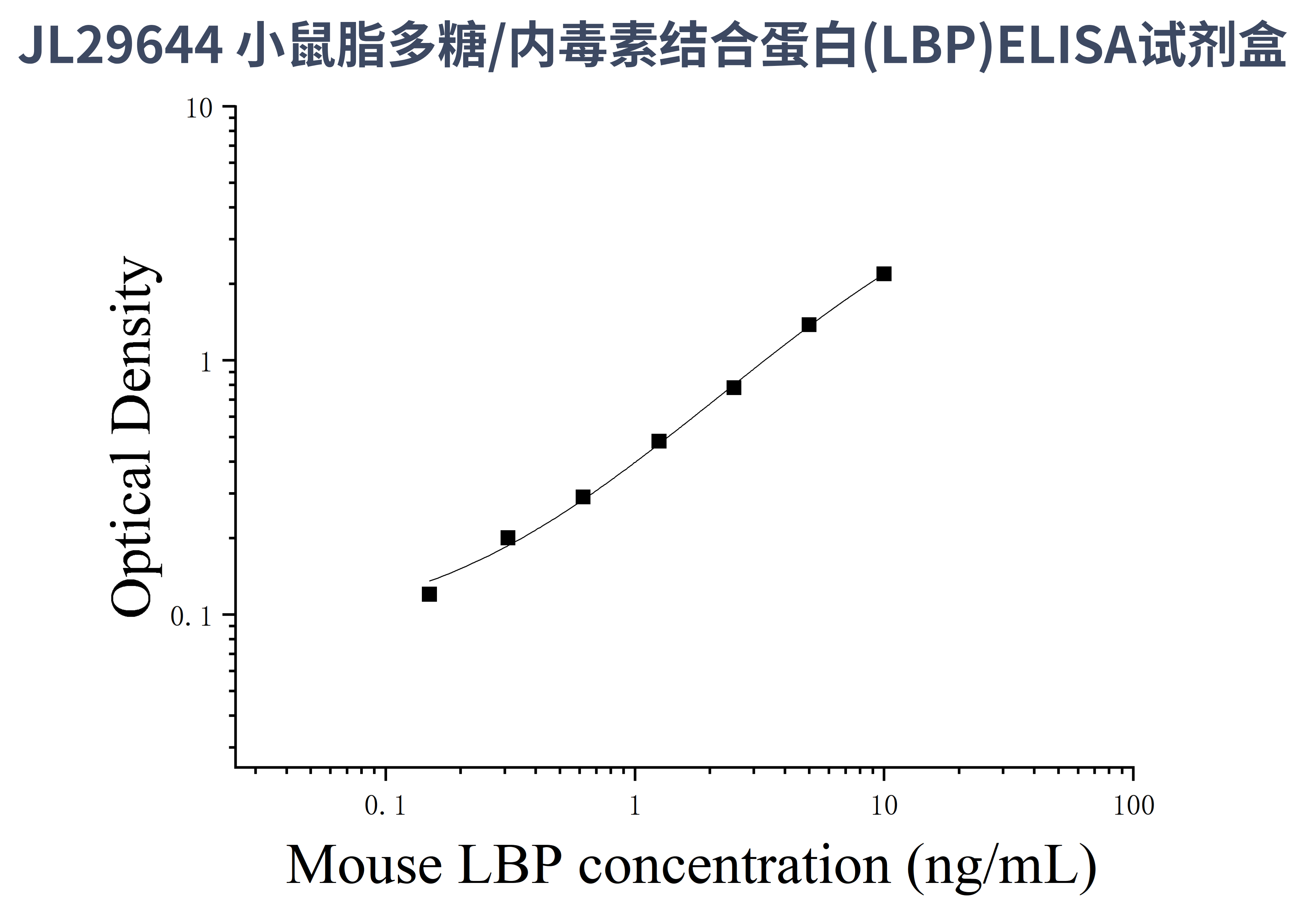 由于实验操作条件的不同( 如操作者、移液技术、洗板技术和稳定条件等),标准曲线的OD值会有所差异。以下数据和曲线仅供参考,实验者需根据自己的实验建立标准曲线。