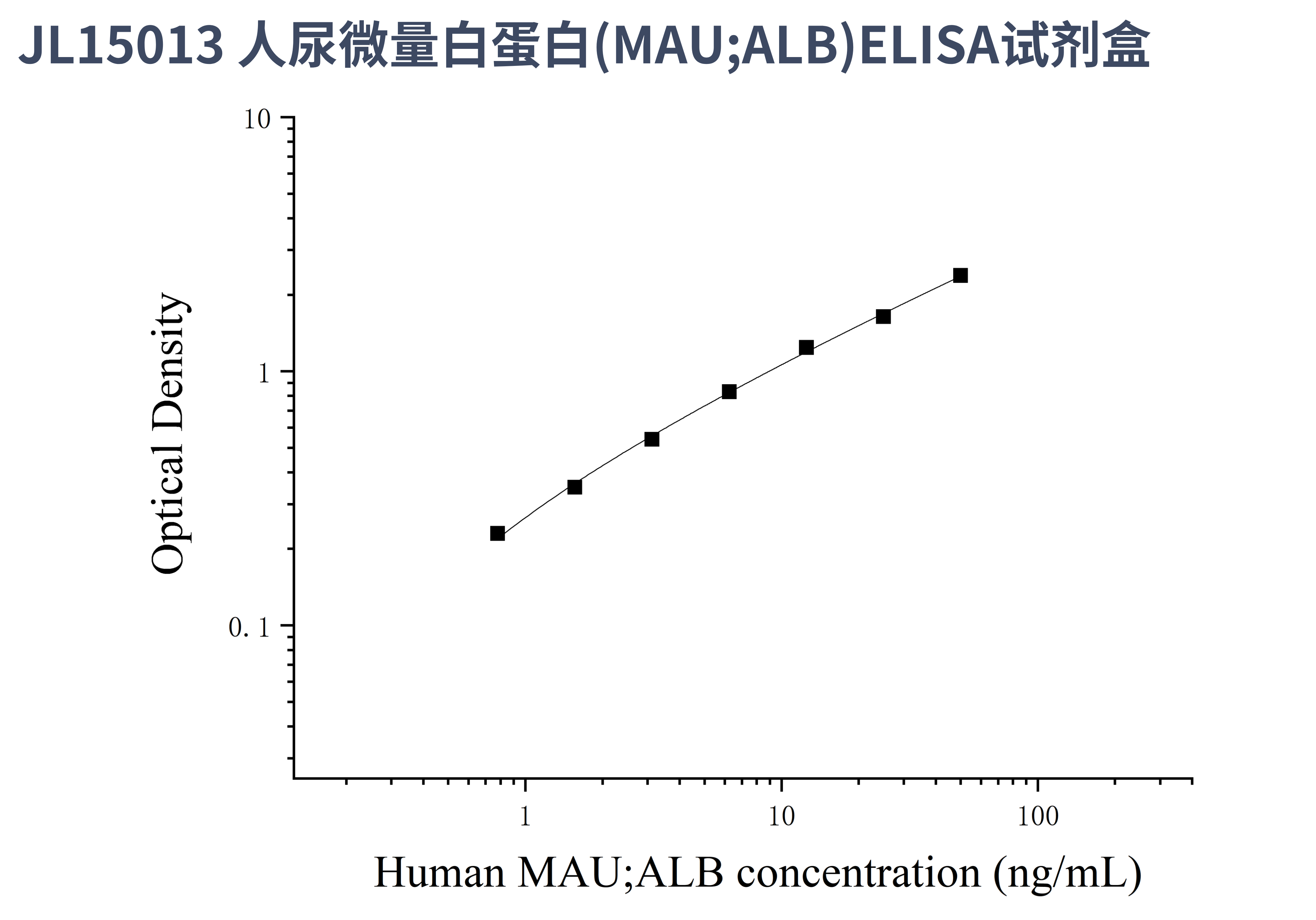 由于实验操作条件的不同( 如操作者、移液技术、洗板技术和稳定条件等),标准曲线的OD值会有所差异。以下数据和曲线仅供参考,实验者需根据自己的实验建立标准曲线。
