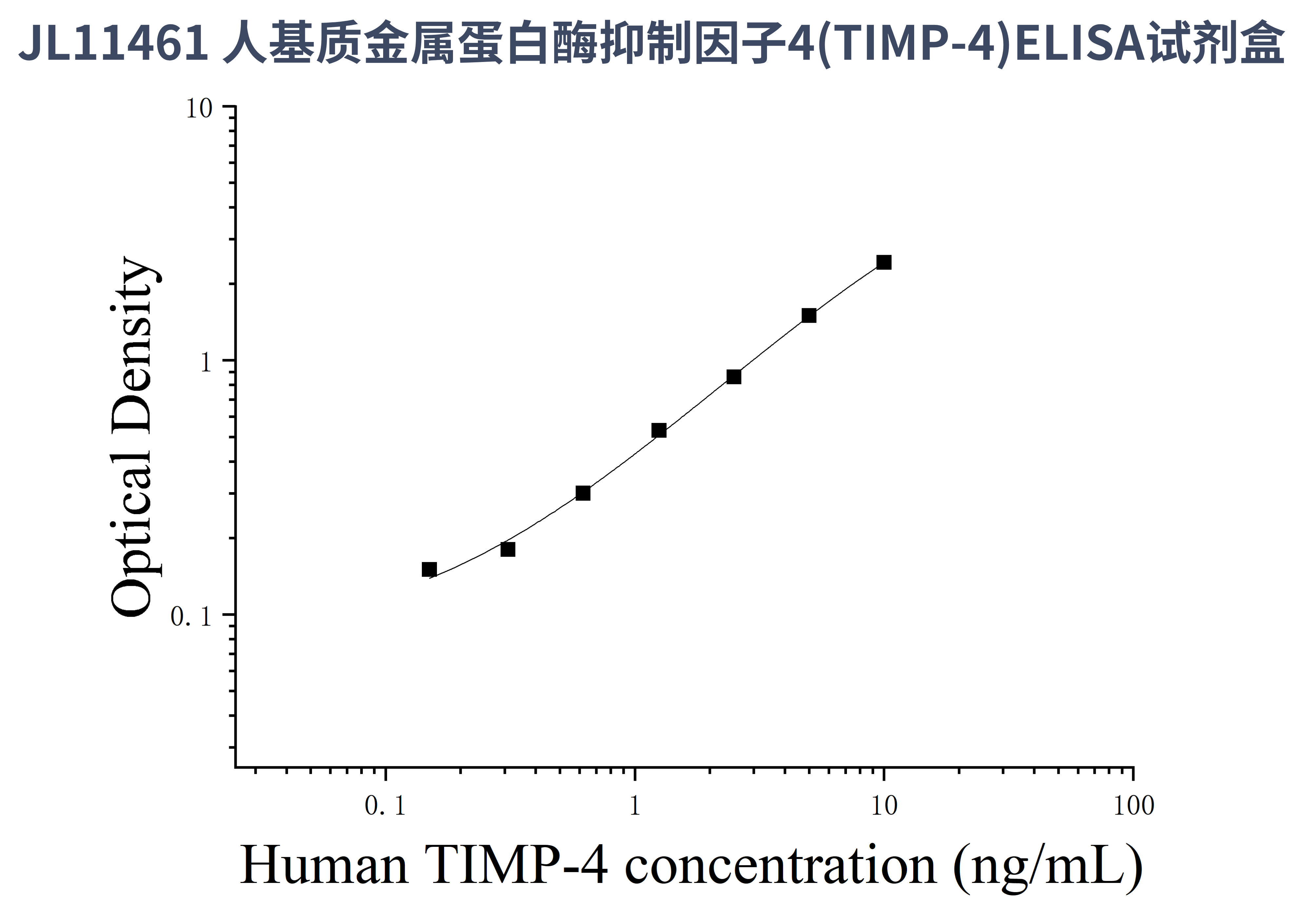 由于实验操作条件的不同( 如操作者、移液技术、洗板技术和稳定条件等),标准曲线的OD值会有所差异。以下数据和曲线仅供参考,实验者需根据自己的实验建立标准曲线。