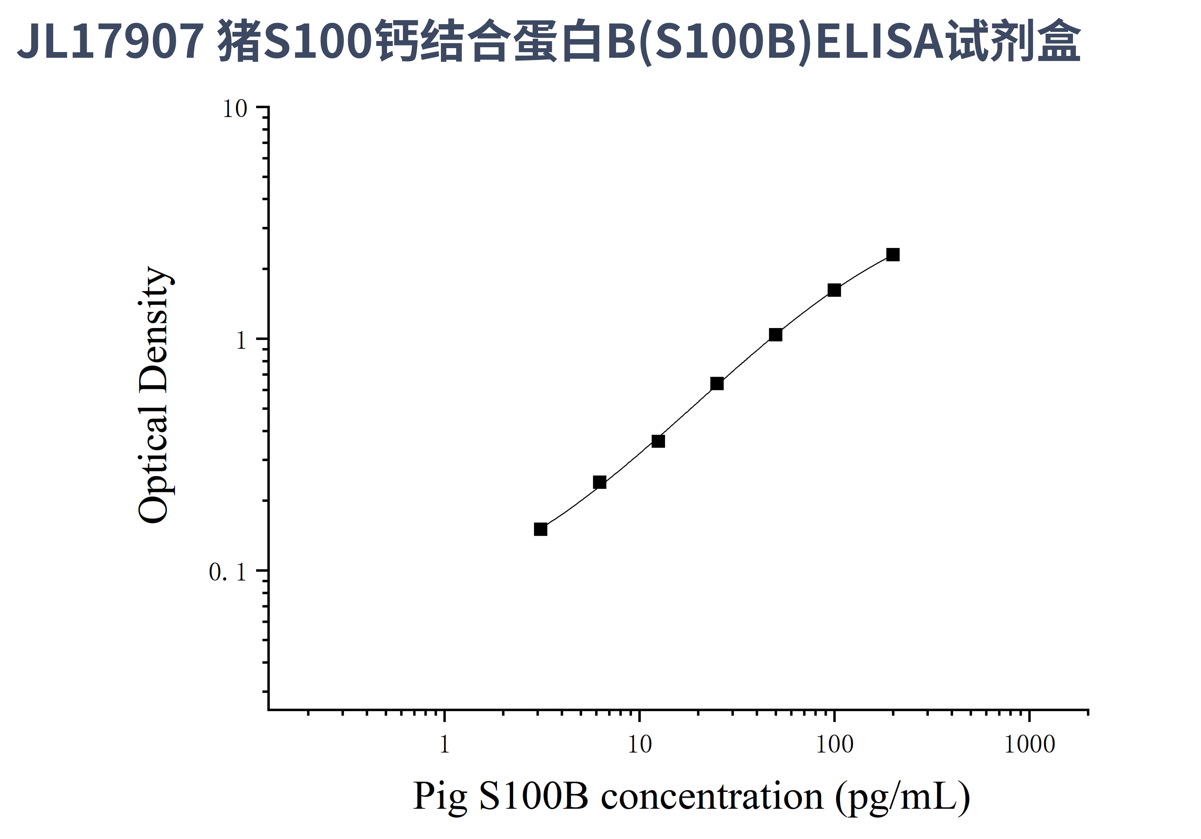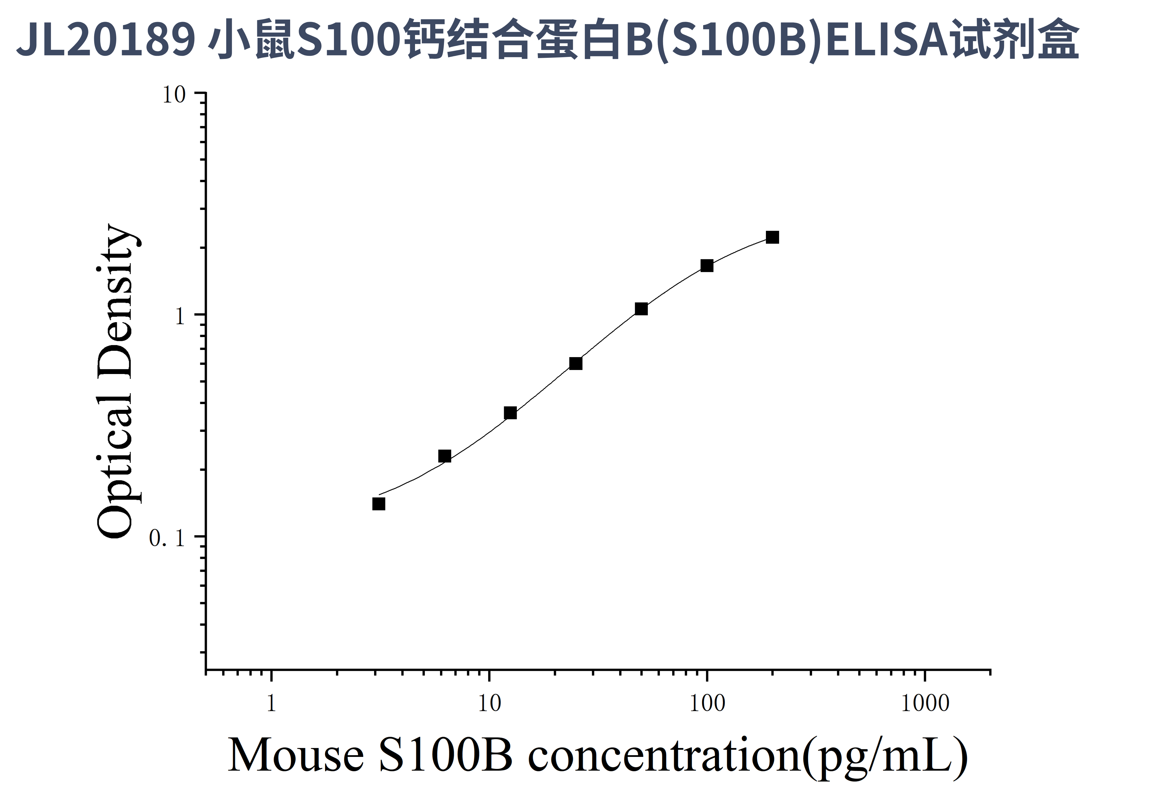 由于实验操作条件的不同( 如操作者、移液技术、洗板技术和稳定条件等),标准曲线的OD值会有所差异。以下数据和曲线仅供参考,实验者需根据自己的实验建立标准曲线。