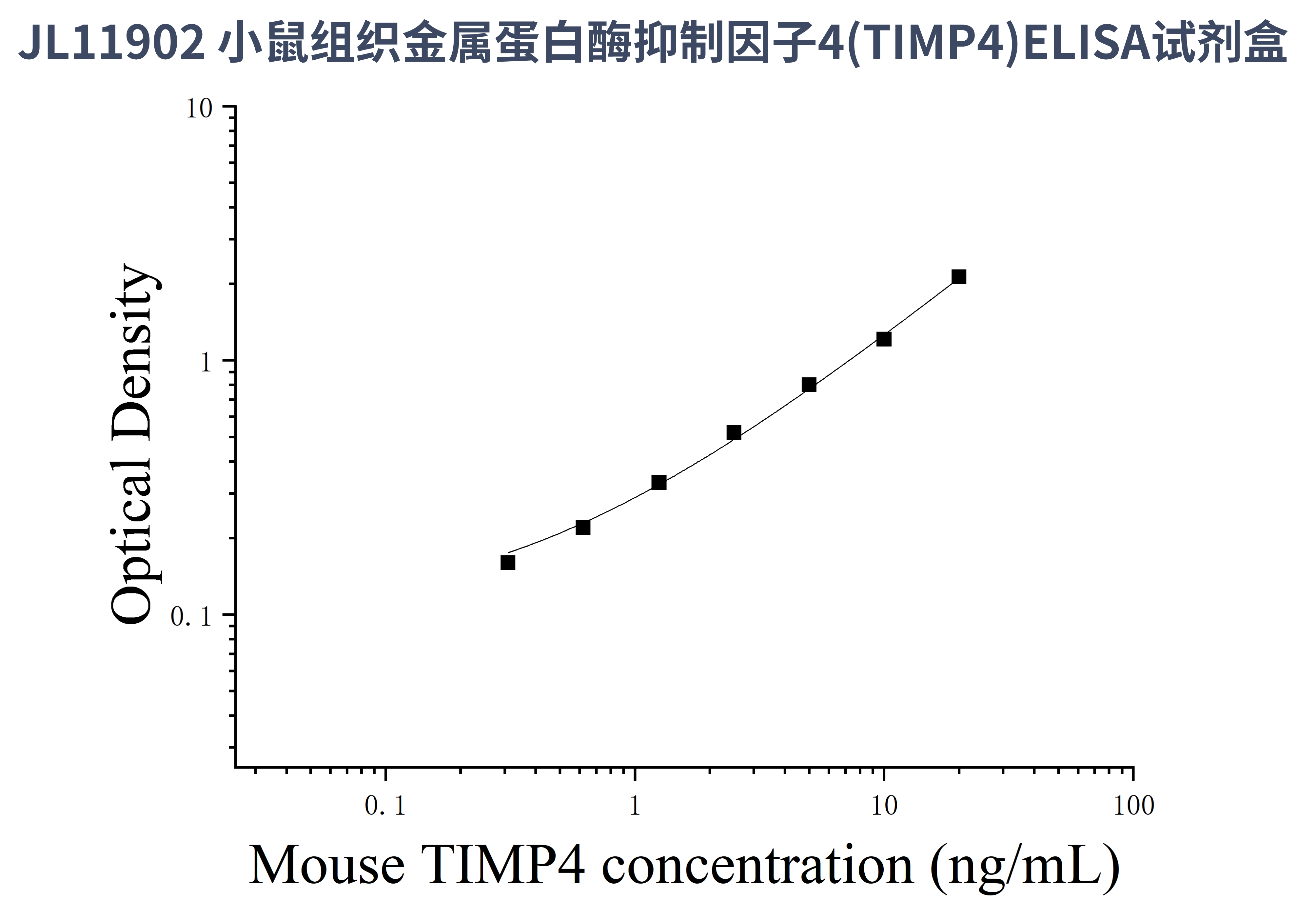 由于实验操作条件的不同( 如操作者、移液技术、洗板技术和稳定条件等),标准曲线的OD值会有所差异。以下数据和曲线仅供参考,实验者需根据自己的实验建立标准曲线。