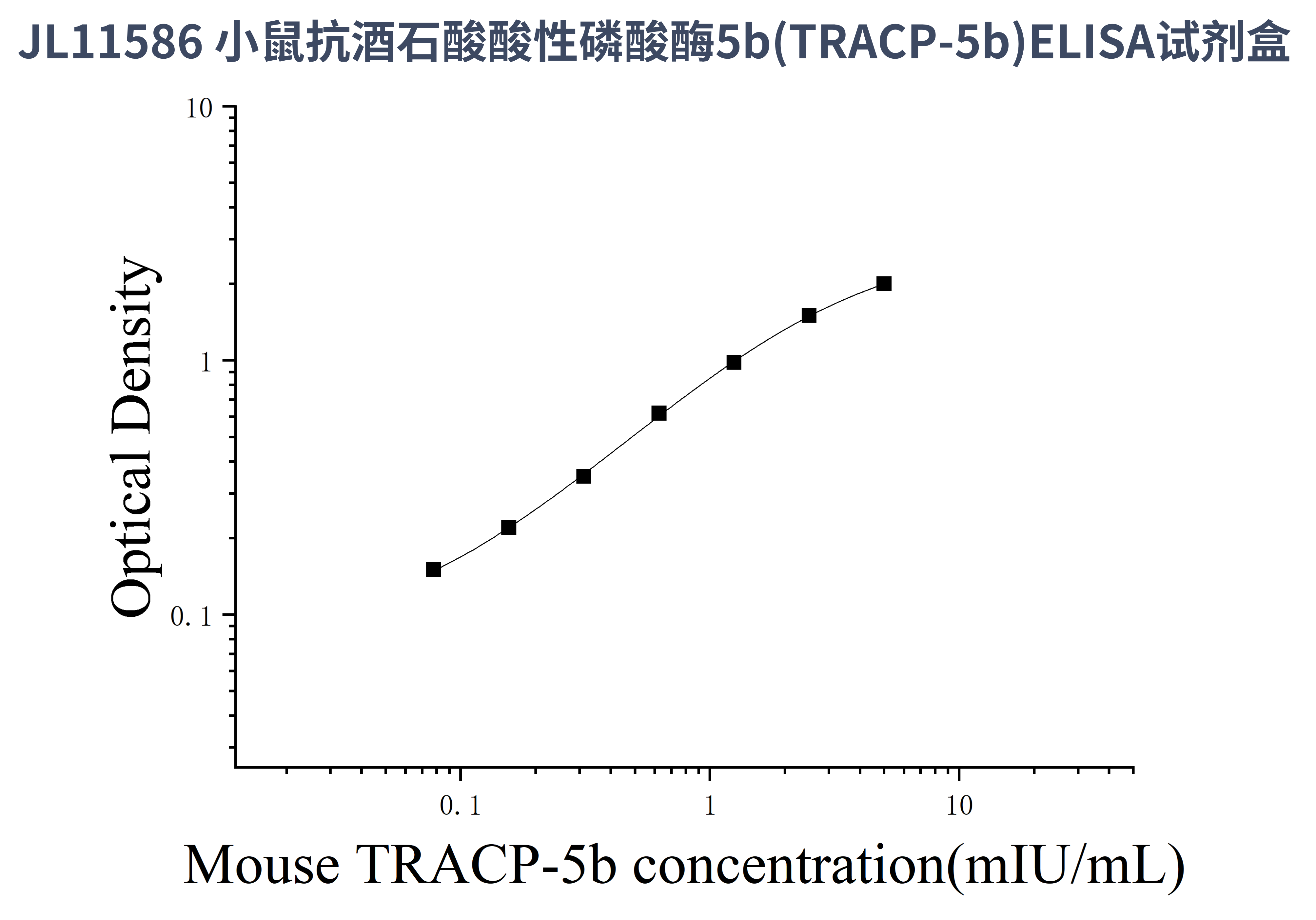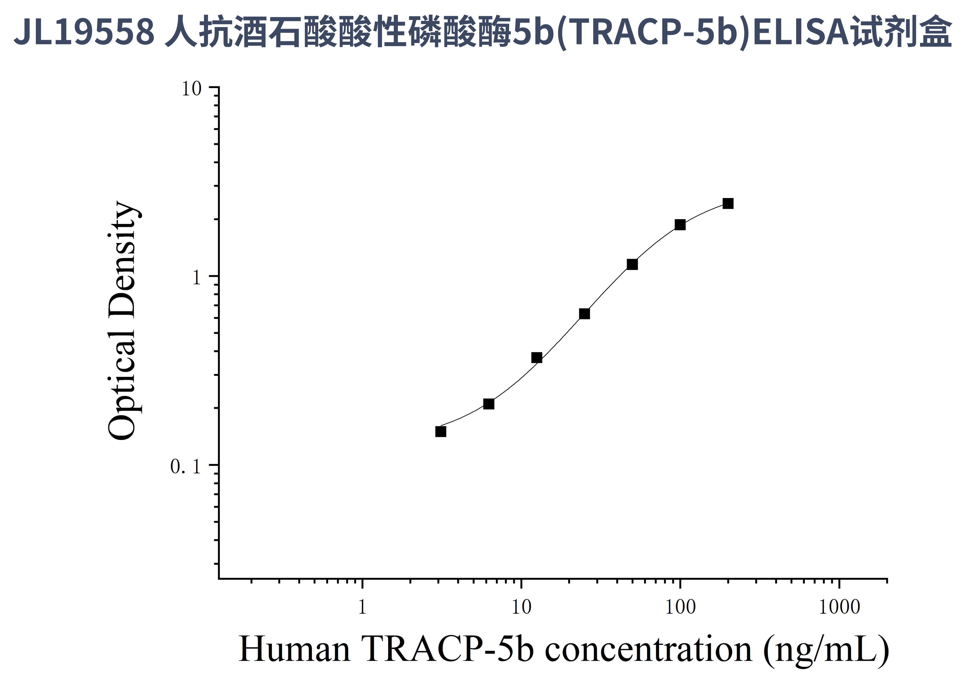由于实验操作条件的不同( 如操作者、移液技术、洗板技术和稳定条件等),标准曲线的OD值会有所差异。以下数据和曲线仅供参考,实验者需根据自己的实验建立标准曲线。