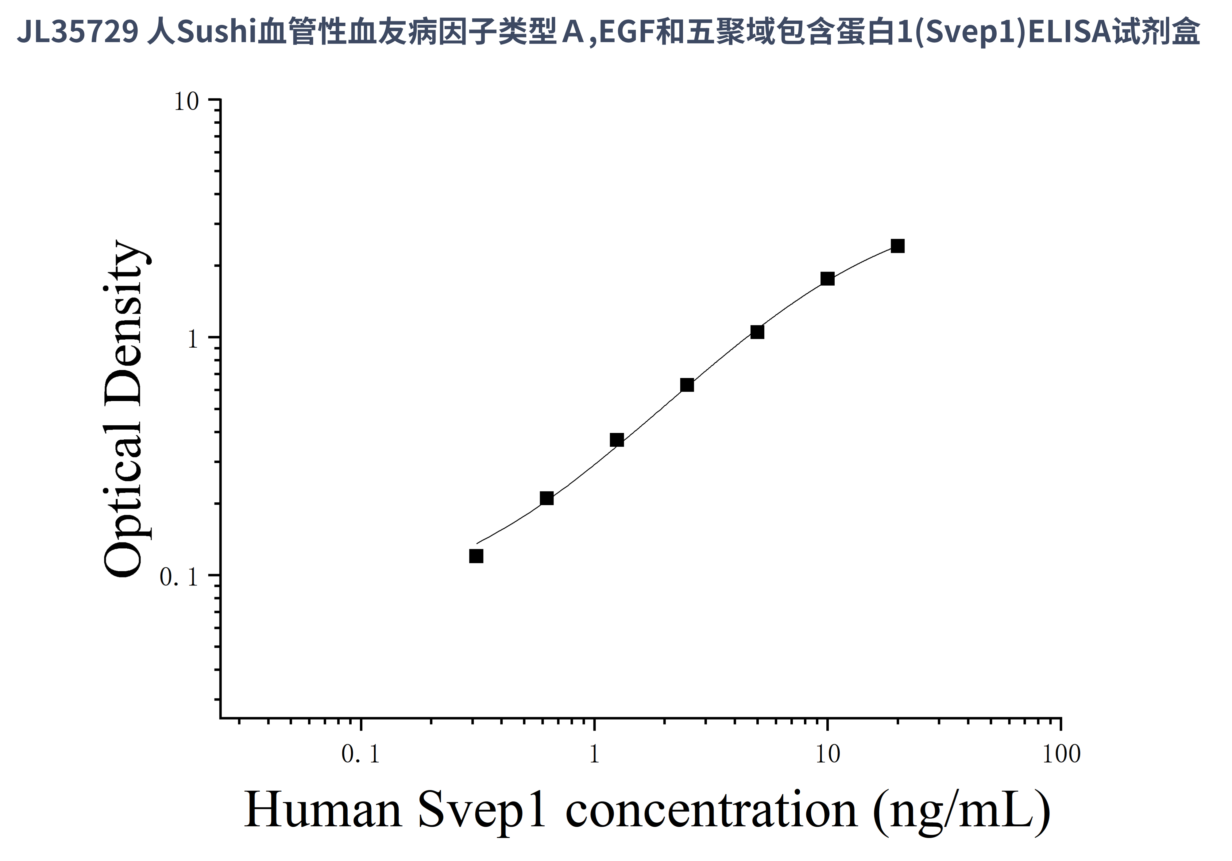 由于实验操作条件的不同( 如操作者、移液技术、洗板技术和稳定条件等),标准曲线的OD值会有所差异。以下数据和曲线仅供参考,实验者需根据自己的实验建立标准曲线。