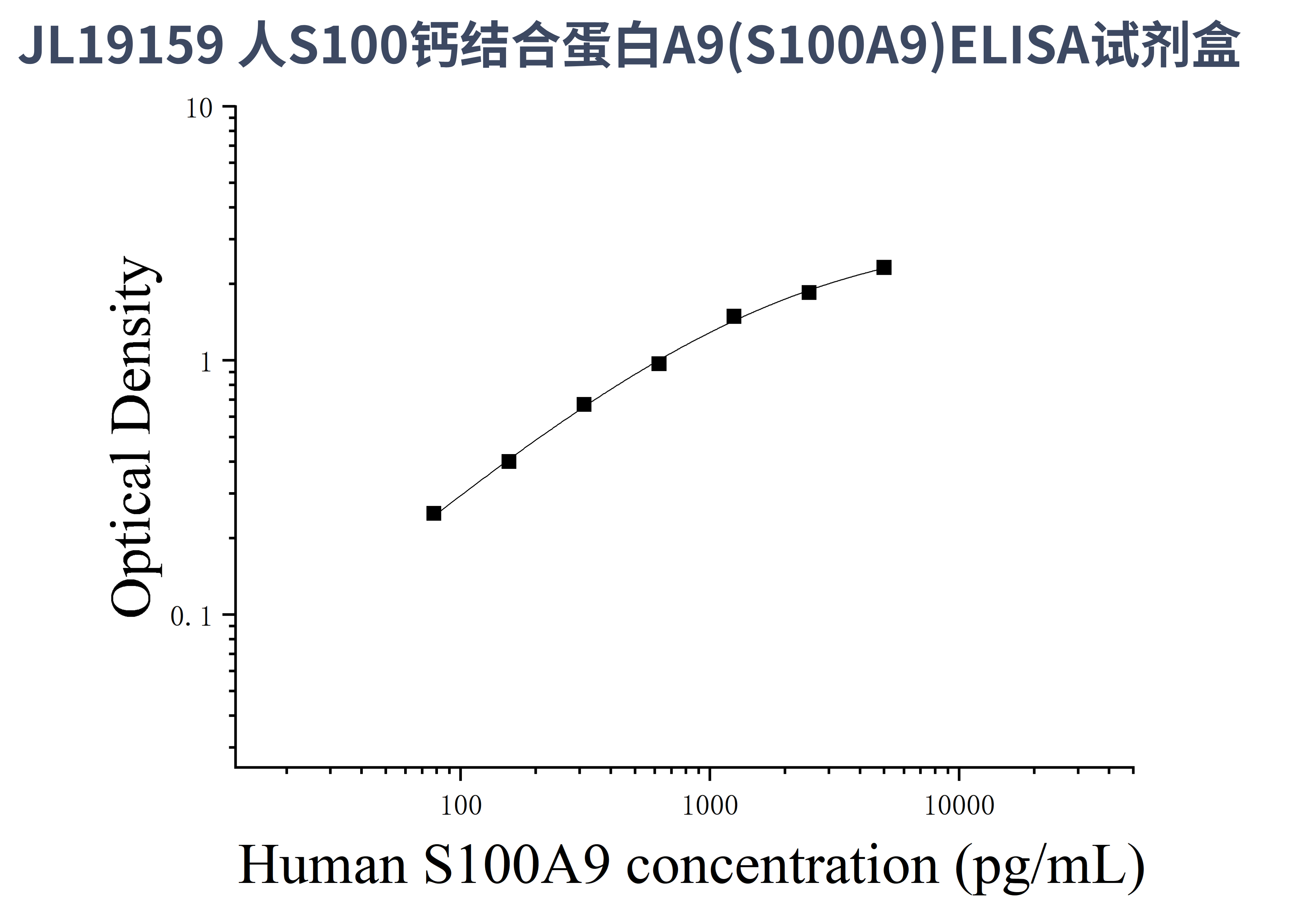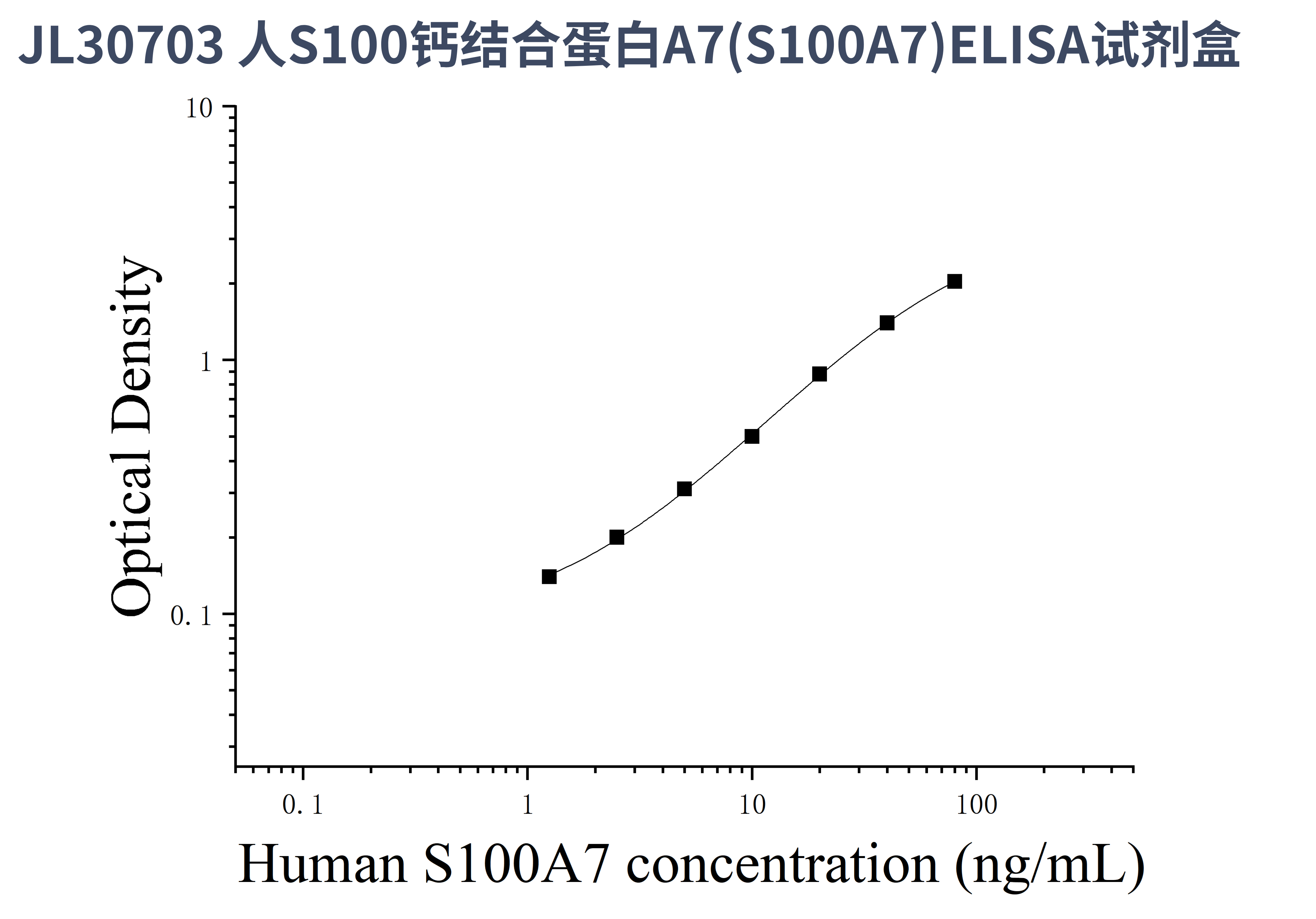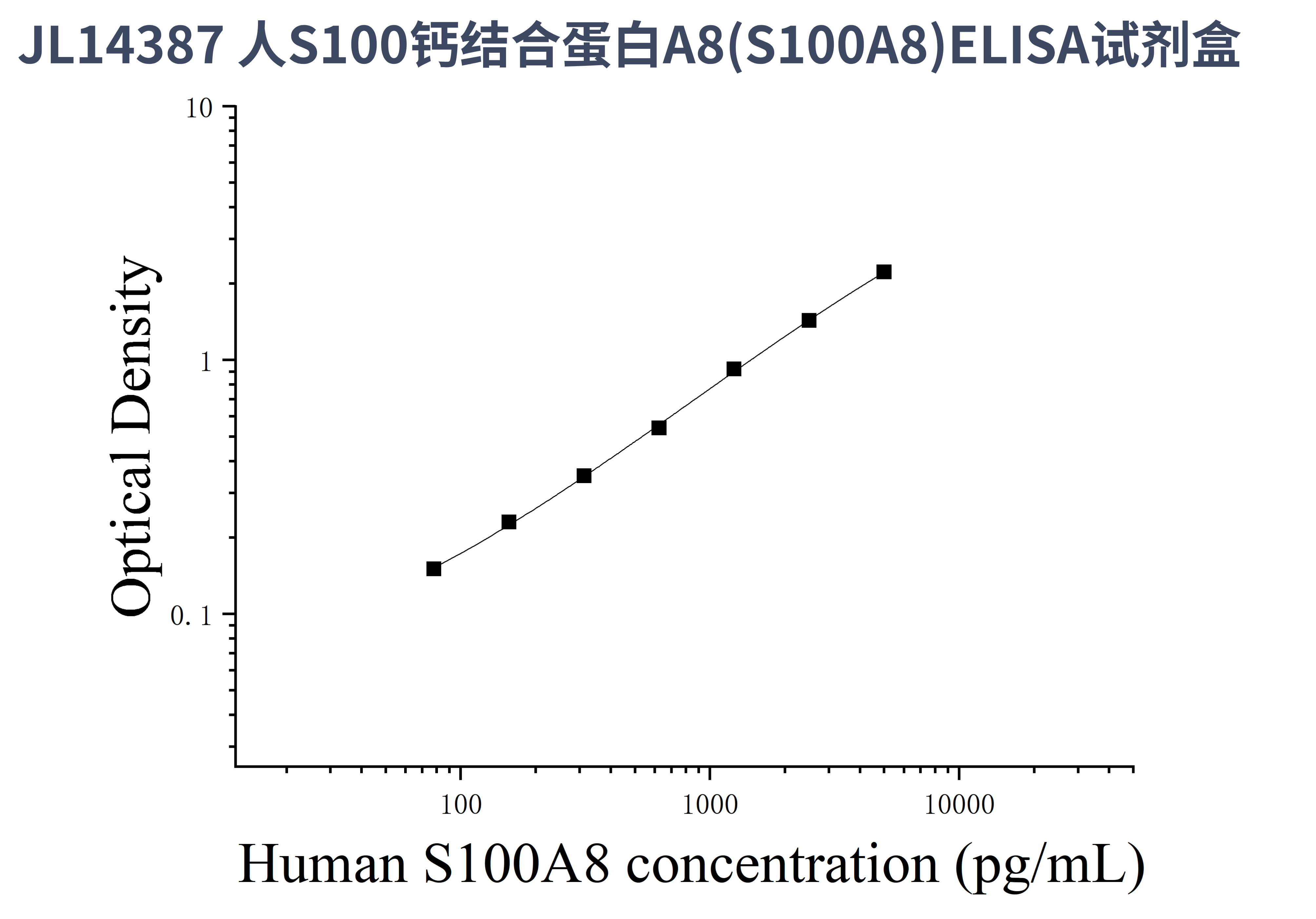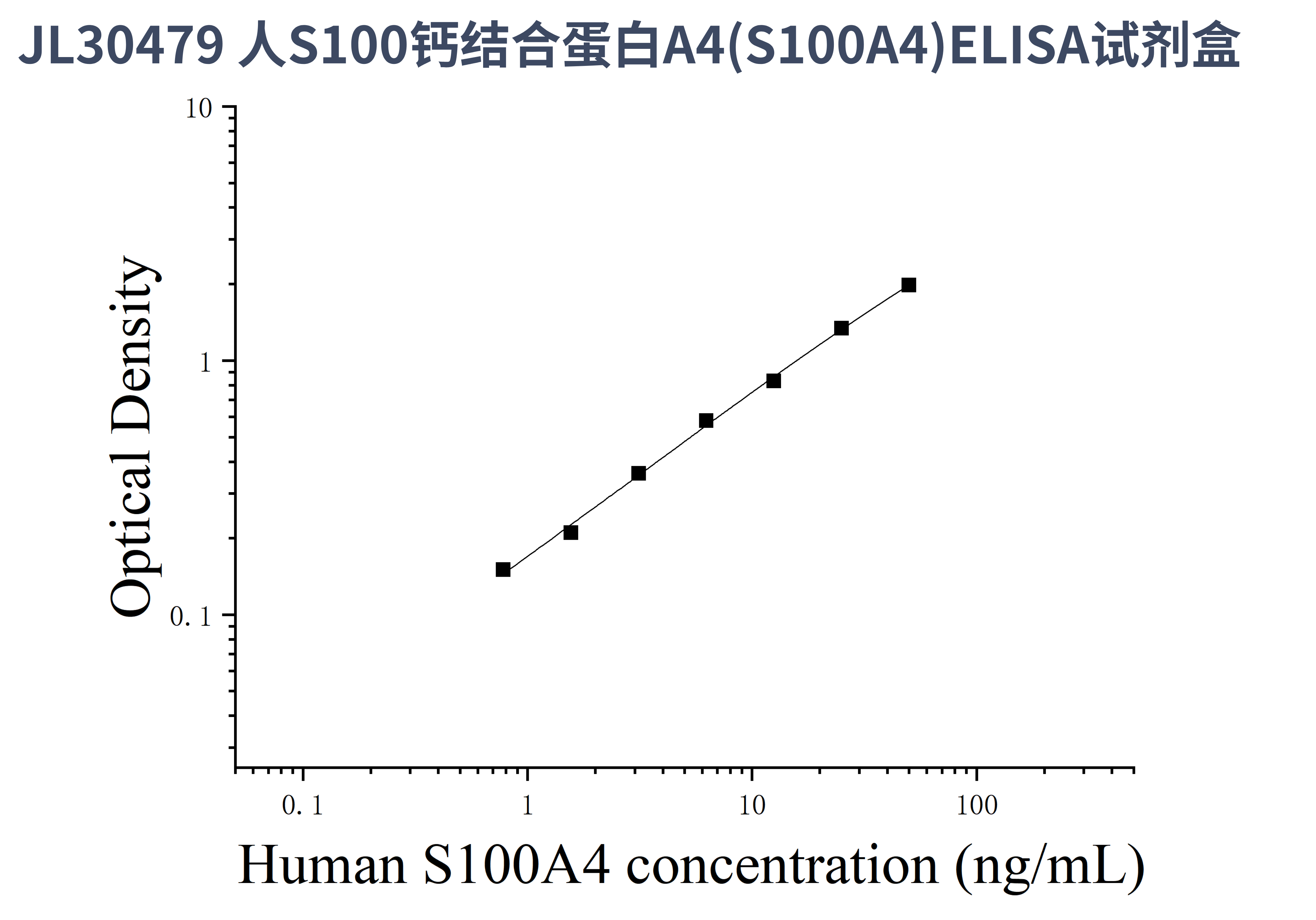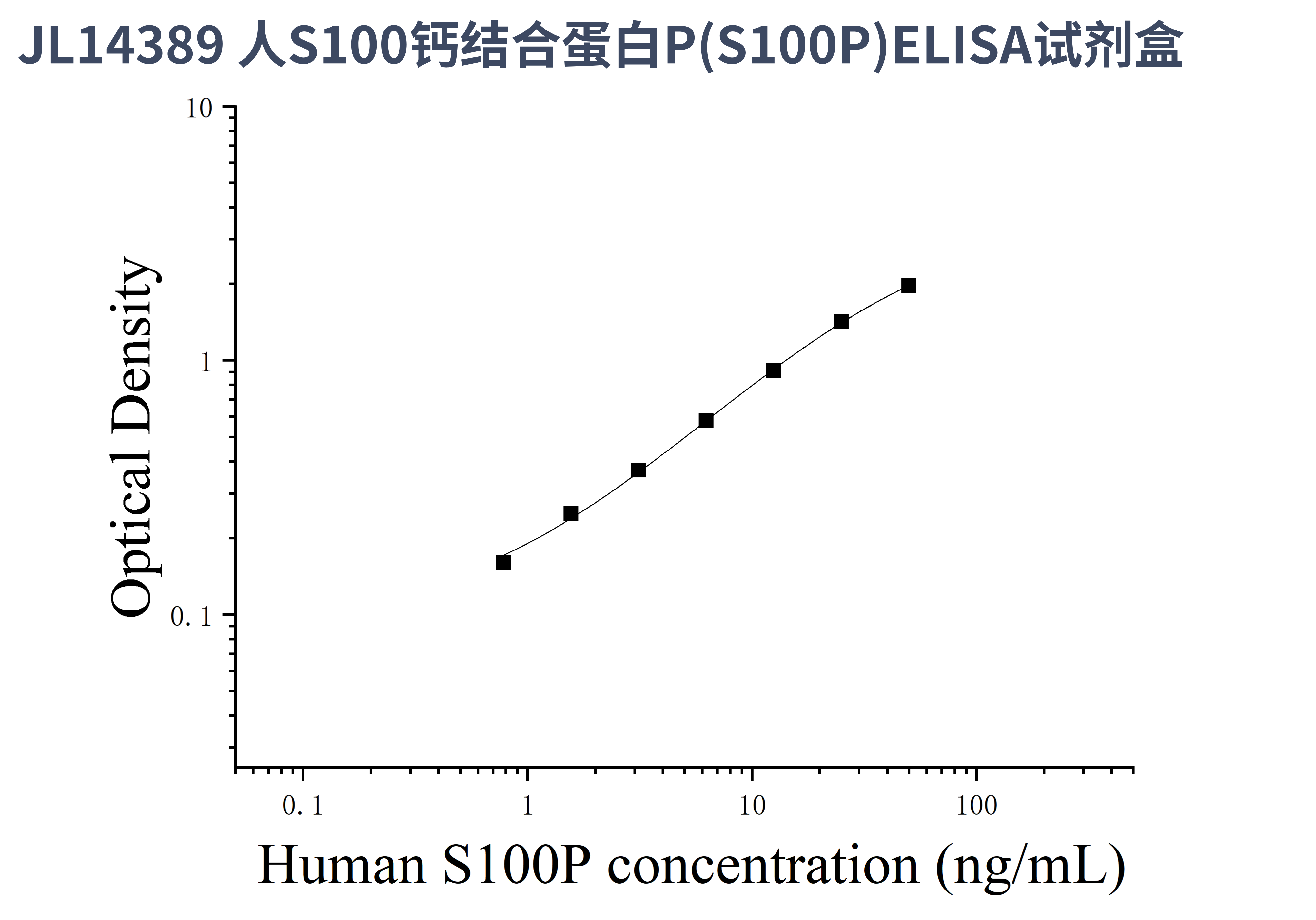 由于实验操作条件的不同( 如操作者、移液技术、洗板技术和稳定条件等),标准曲线的OD值会有所差异。以下数据和曲线仅供参考,实验者需根据自己的实验建立标准曲线。